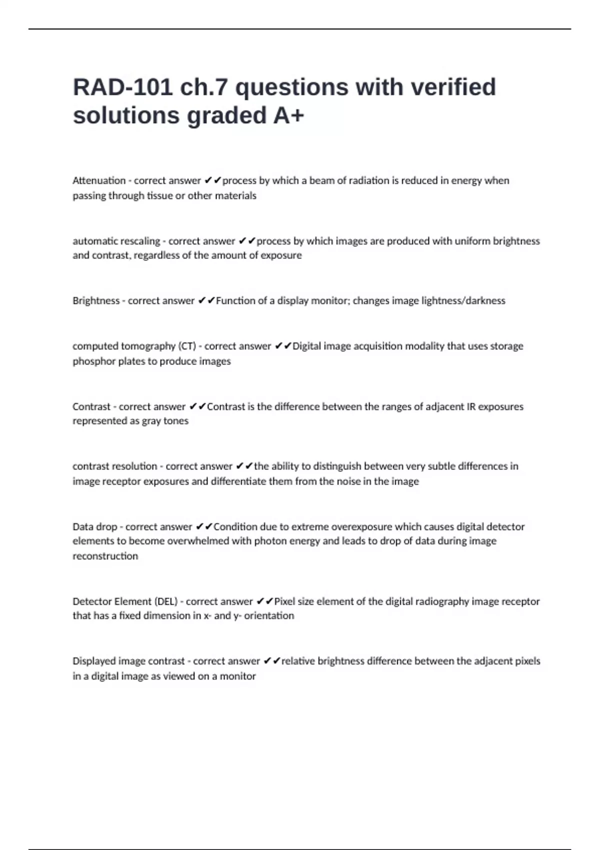 Attenuation - correct answer ✔✔process by which a beam of radiation is reduced in energy when