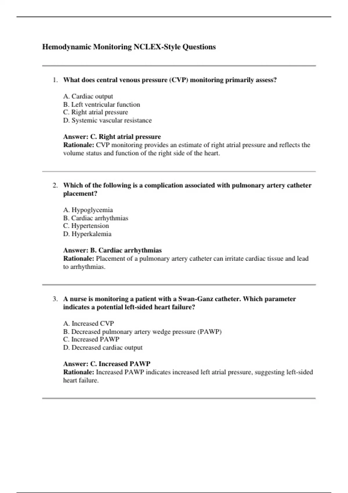 9. A patient is being monitored for heart failure. Which hemodynamic parameter