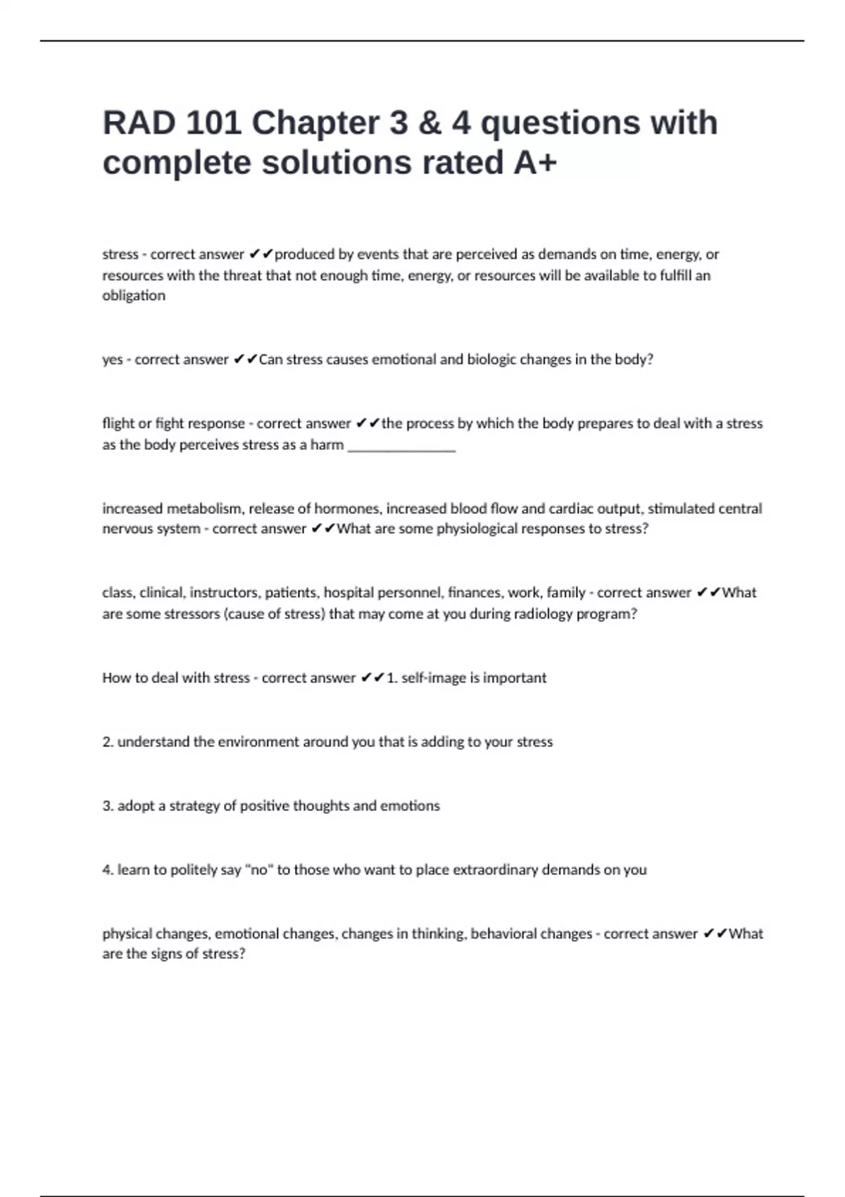 How to deal with stress - correct answer ✔✔1. self-image is important