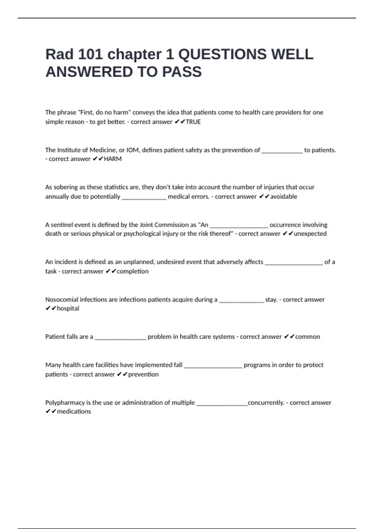Rad 101 chapter 1 QUESTIONS WELL ANSWERED TO PASS