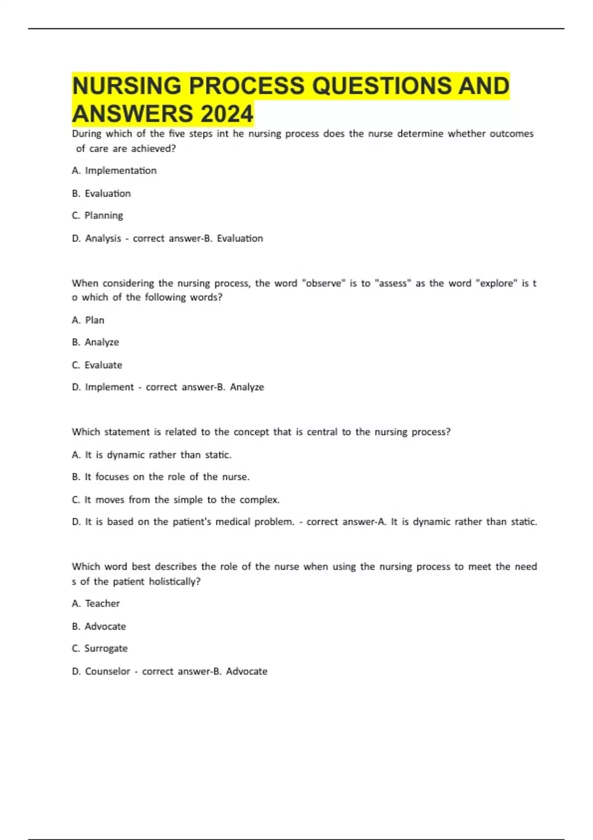WhichMstatementMisMrelatedMtoMtheMconceptMthatMisMcentralMtoMtheMnursingMprocess?