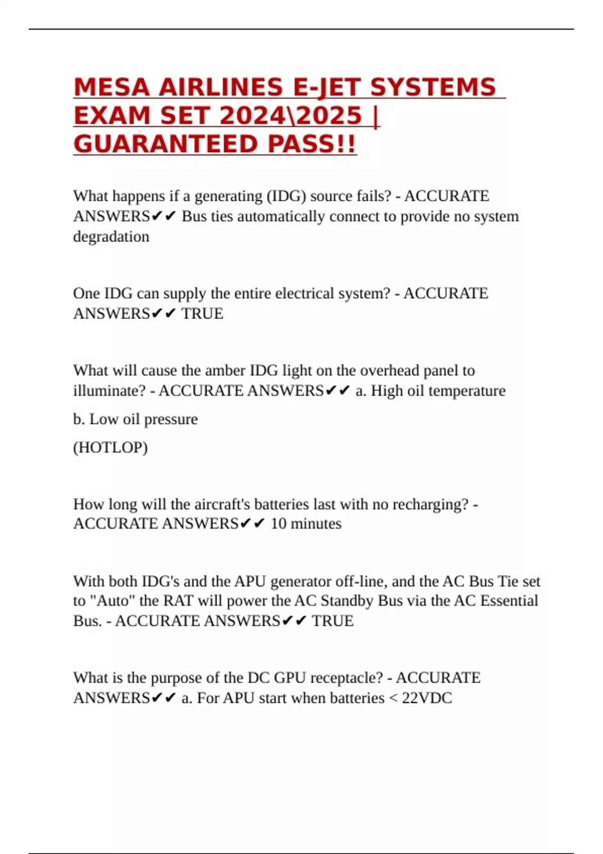 ANSWERS✔✔ a. For APU start when batteries < 22VDC