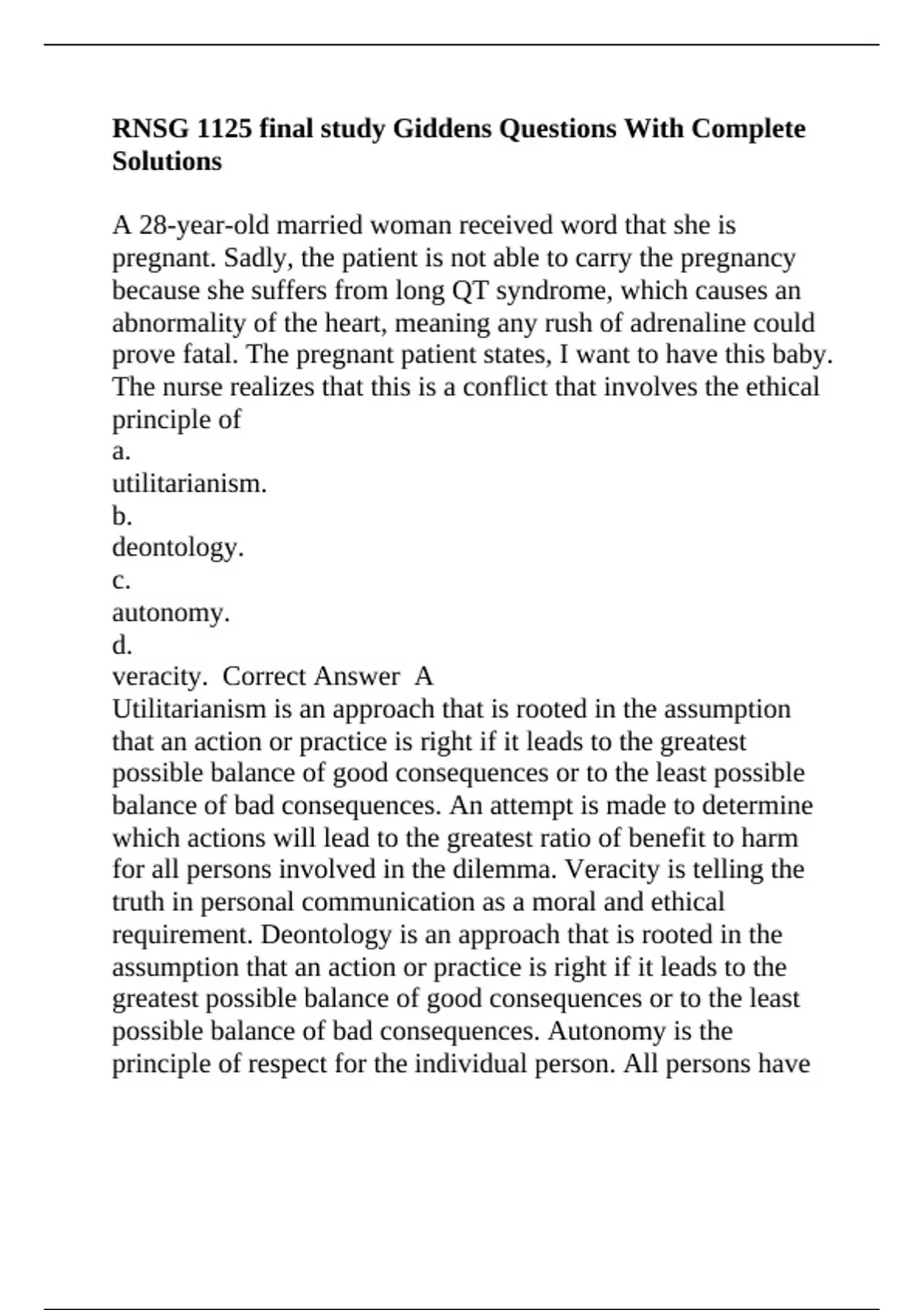 veracity. Correct Answer A