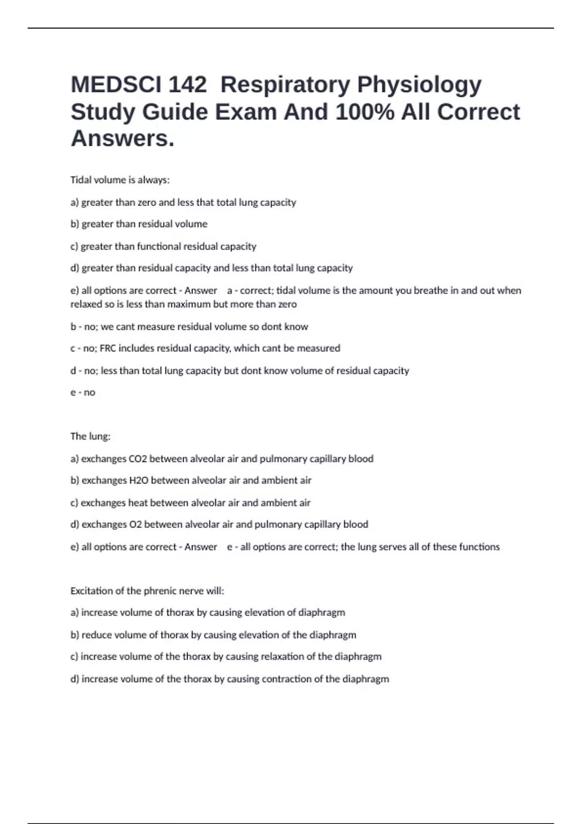 e) all options are correct - Answer a - correct; tidal volume is the amount you breathe in and out when