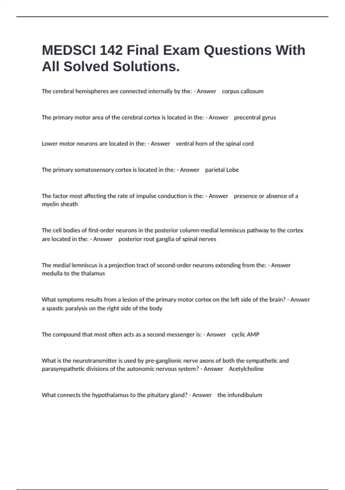 The cerebral hemispheres are connected internally by the: - Answer corpus callosum