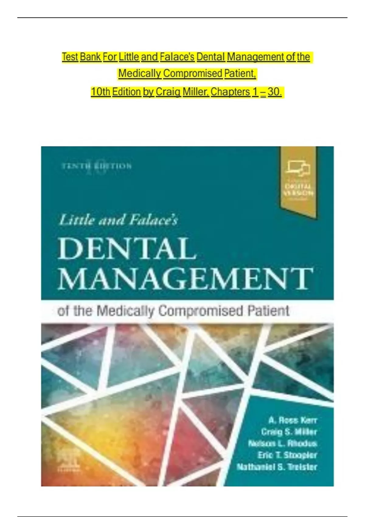 ,Little: n Dental n Management n of n the n Medically n Compromised n Patient, n 10th n Edition n Test
