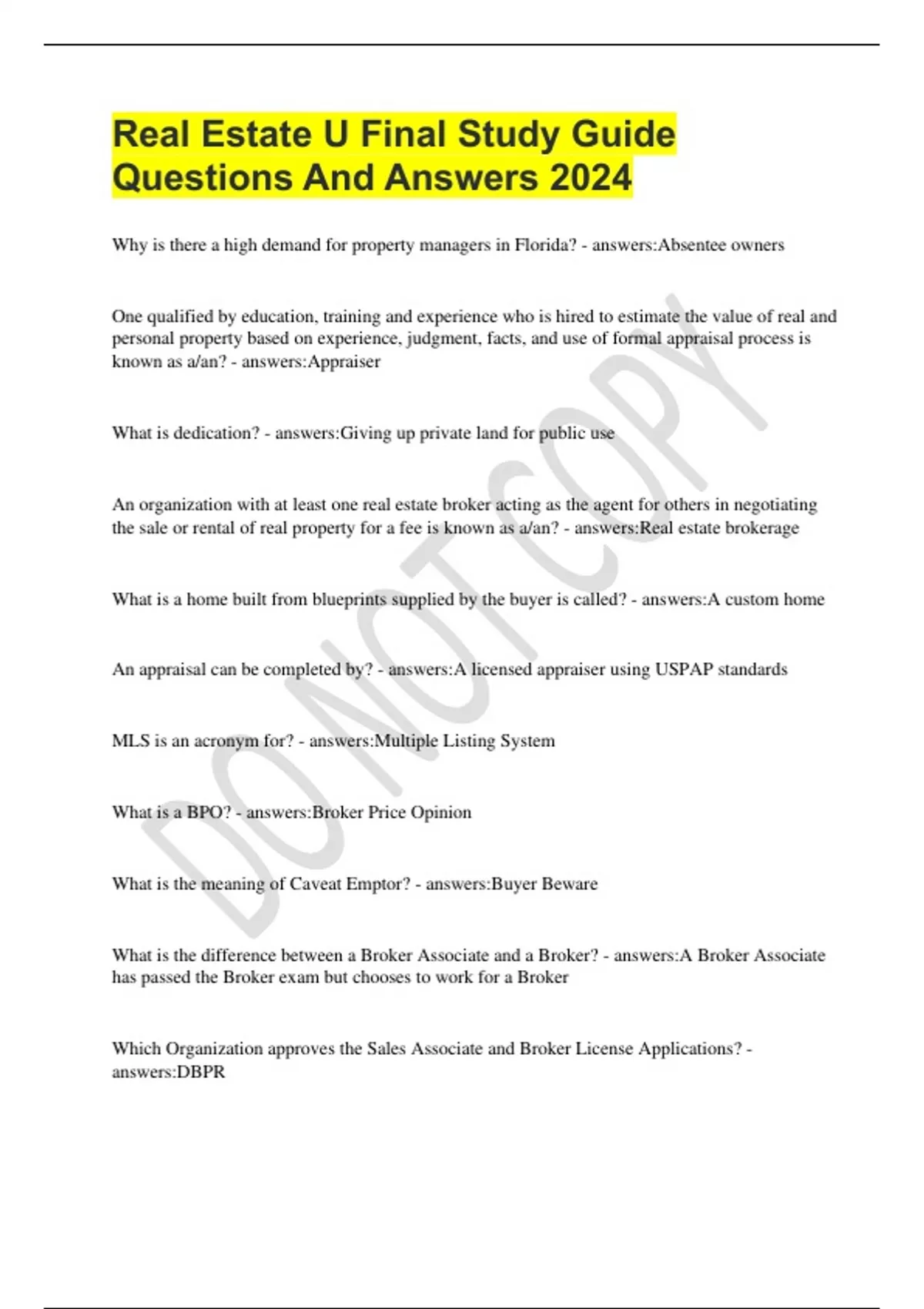 Real Estate U Final Study Guide