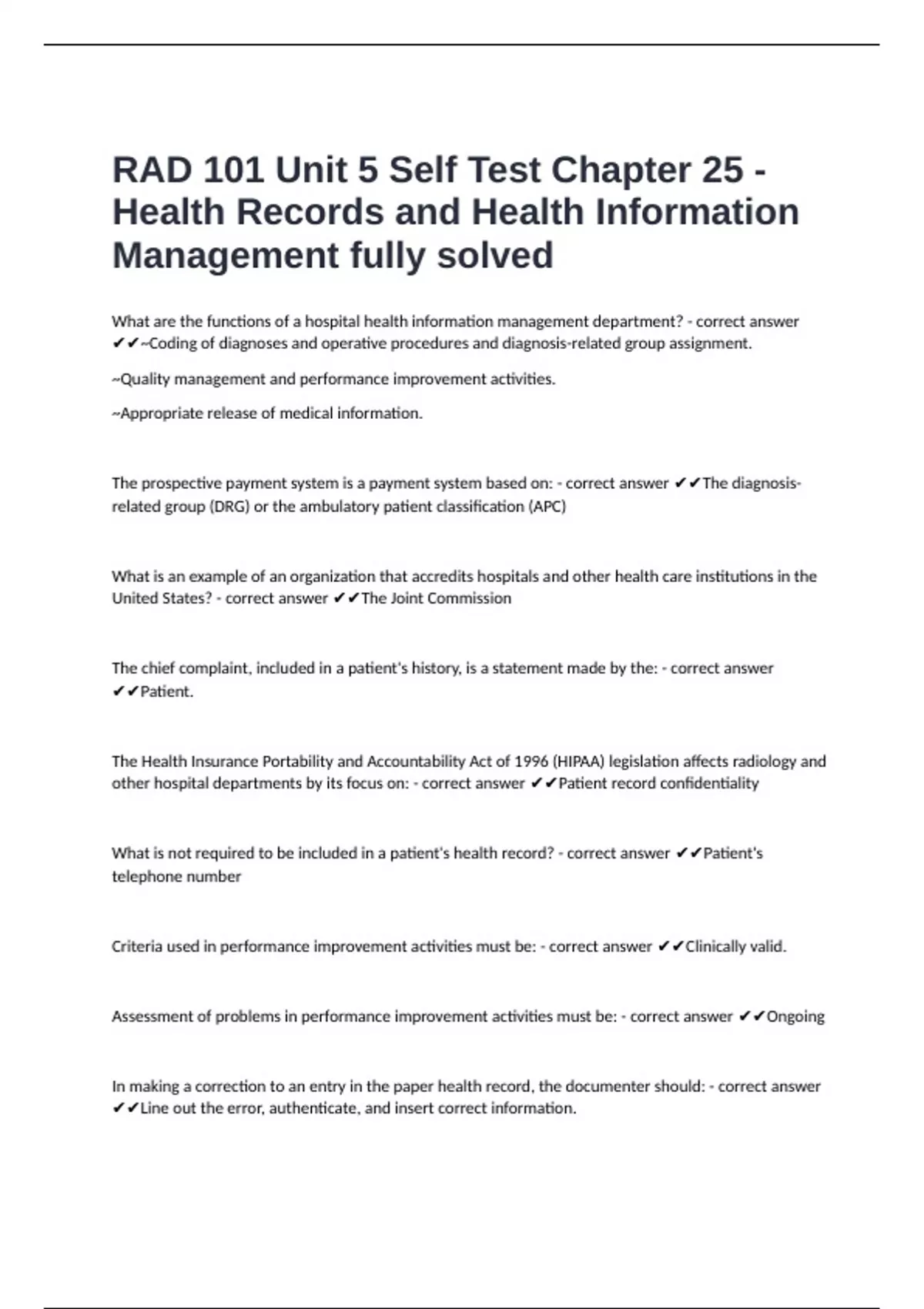 other hospital departments by its focus on: - correct answer ✔✔Patient record confidentiality