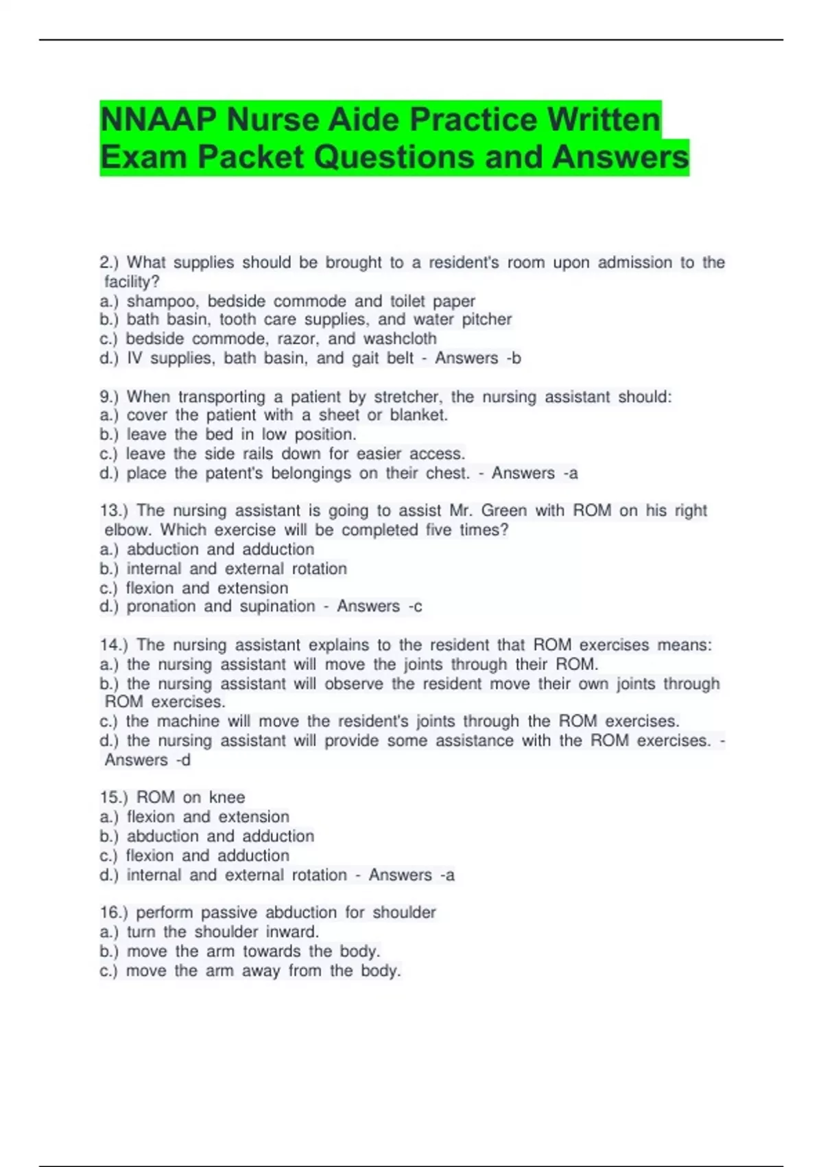 NNAAP Nurse Aide Practice Written Exam Packet Questions and Answers