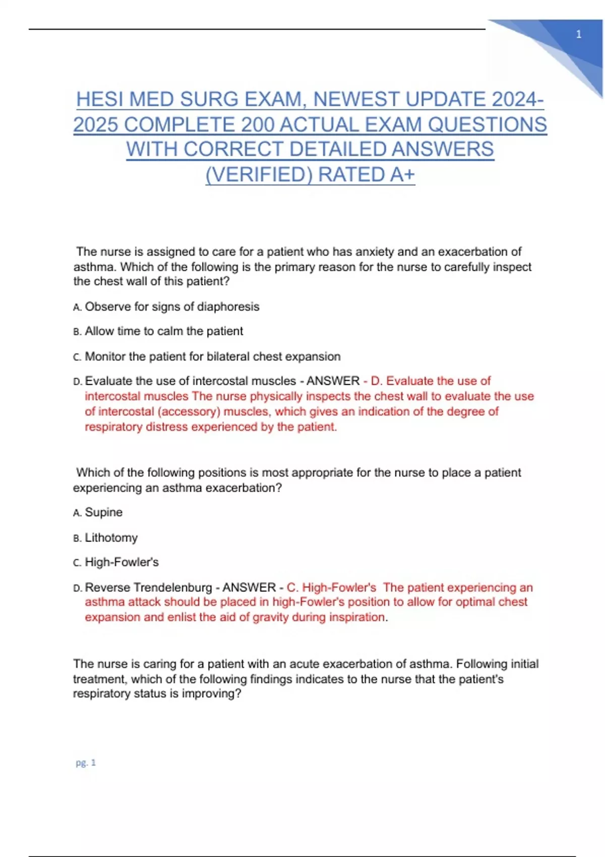HESI MED SURG EXAM, NEWEST UPDATE 2024-