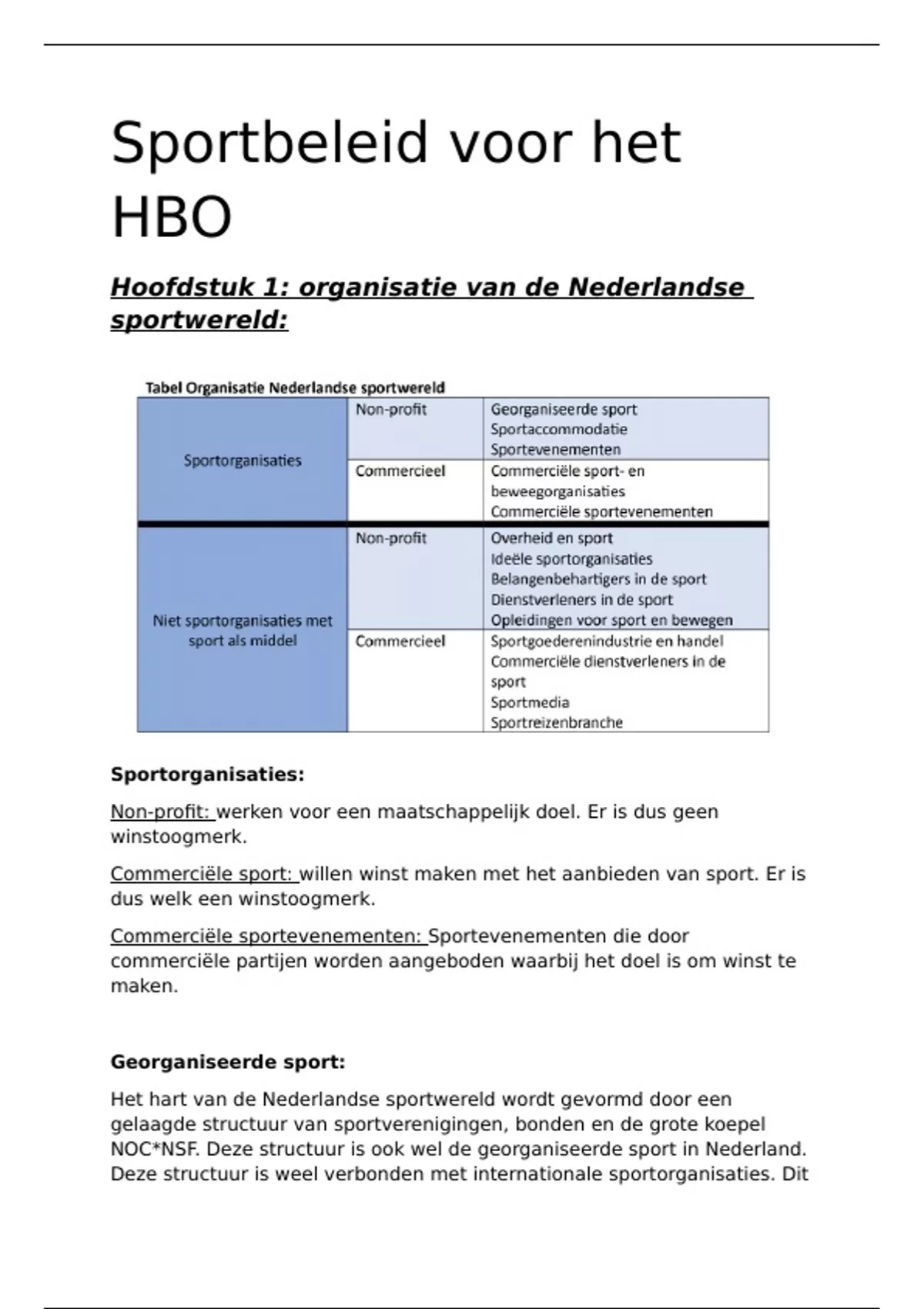 Samenvatting sportbeleid voor het HBO hoofdstuk 1,2,4,5,6
