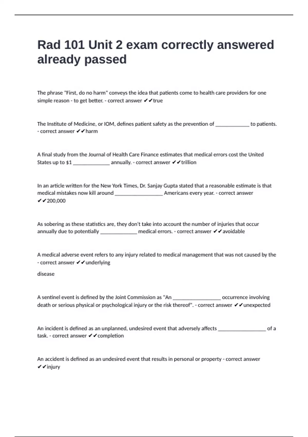 annually due to potentially _____________ medical errors. - correct answer ✔✔avoidable