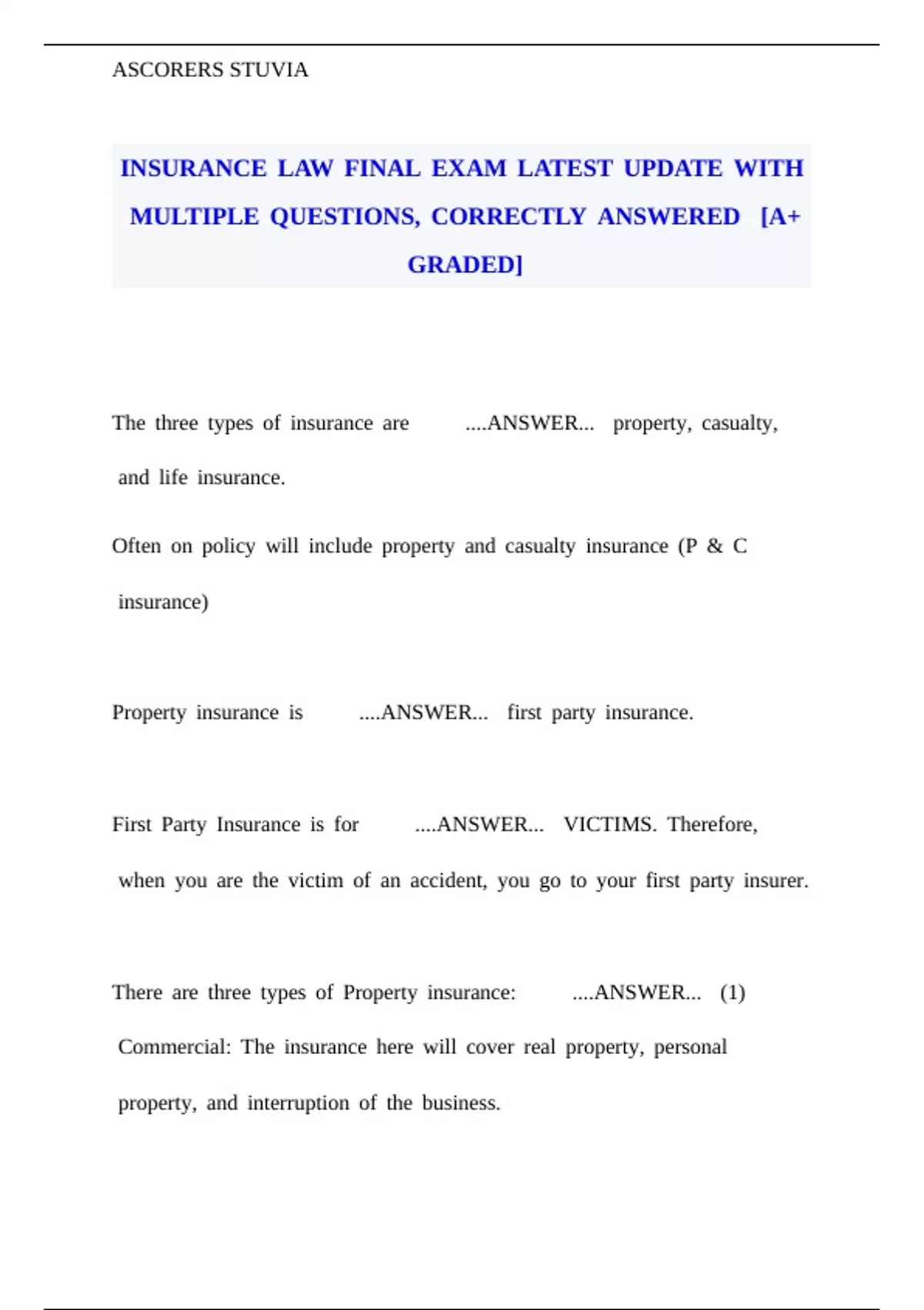 INSURANCE bLAW bFINAL bEXAM bLATEST bUPDATE bWITH