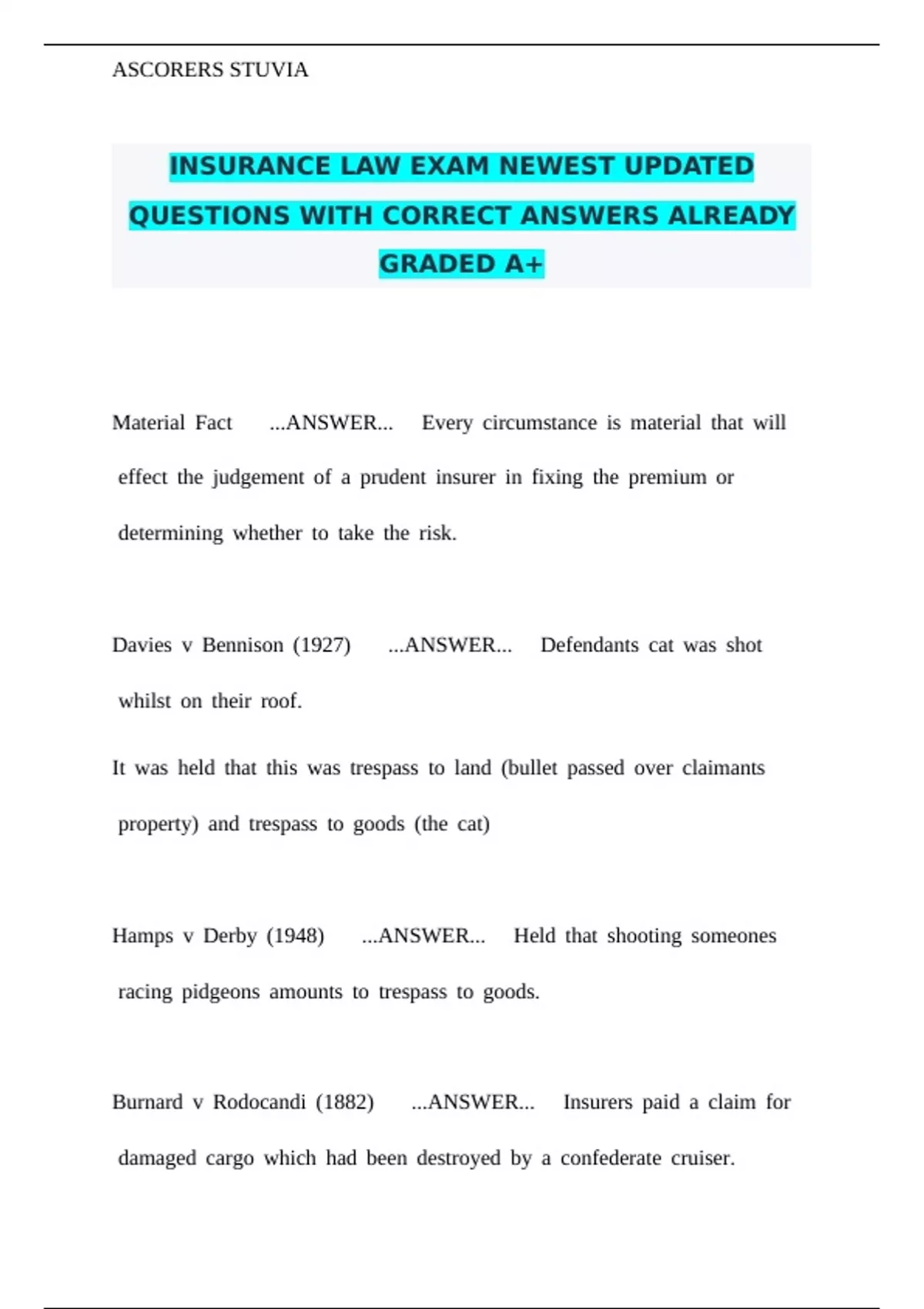 Burnard bv bRodocandi b(1882) b b b b...ANSWER... b b bInsurers bpaid ba bclaim bfor