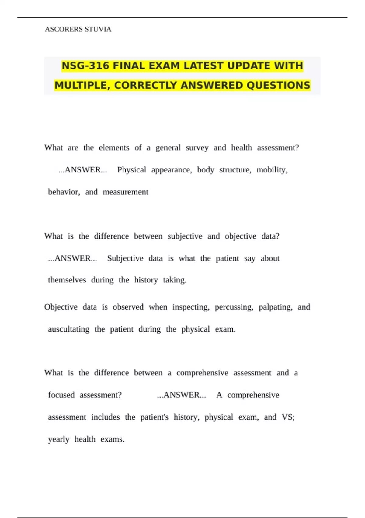 NSG-316 FINAL EXAM LATEST UPDATE WITH