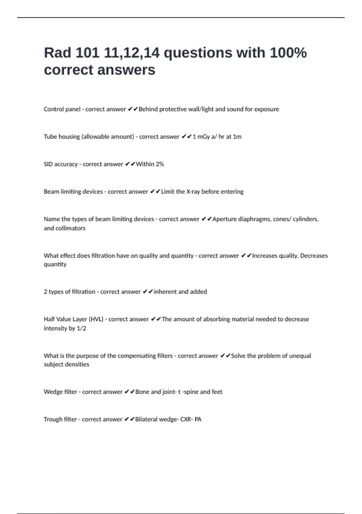 Beam limiting devices - correct answer ✔✔Limit the X-ray before entering