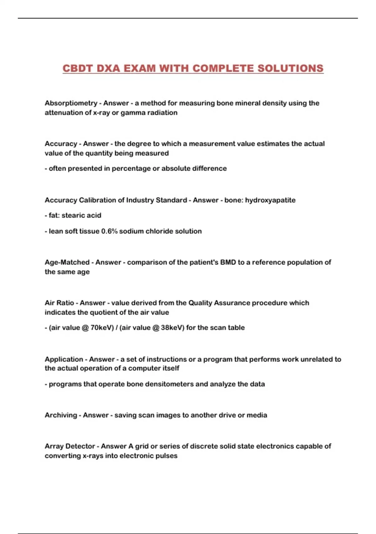 CBDT DXA EXAM WITH COMPLETE SOLUTIONS