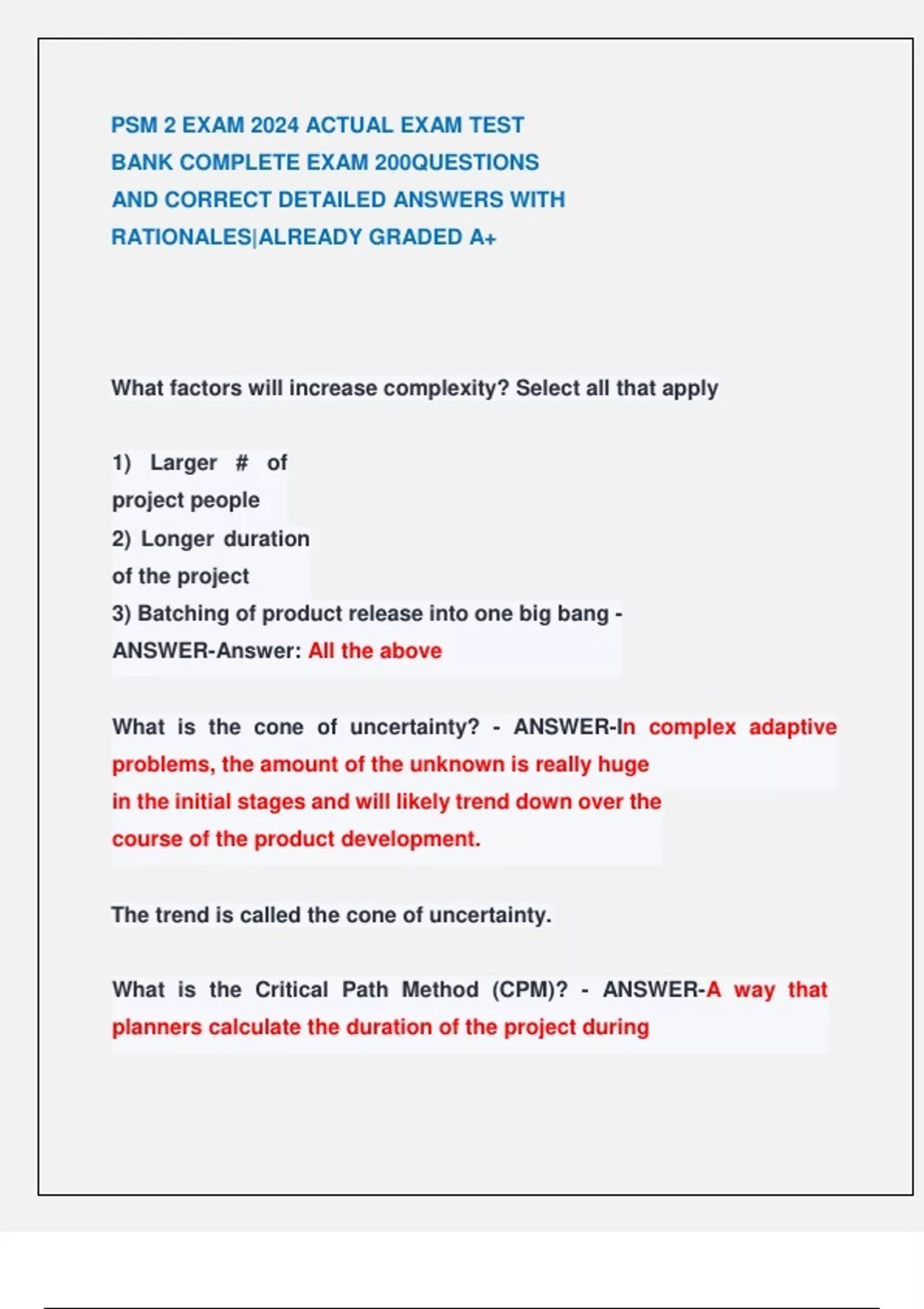 PSM 2 EXAM 2024 ACTUAL EXAM TEST BANK COMPLETE EXAM 200QUESTIONS AND CORRECT DETAILED ANSWERS WITH RATIONALES|ALREADY GRADED A+ PSM 2 EXAM 2024 ACTUAL EXAM TEST BANK COMPLETE EXAM 200QUESTIONS AND CORRECT DETAILED ANSWERS WITH RATIONALES|ALREADY GRADED A+ PSM 2 EXAM 2024 ACTUAL EXAM TEST BANK COMPLETE EXAM 200QUESTIONS AND CORRECT DETAILED ANSWERS WITH RATIONALES|ALREADY GRADED A+ PSM 2 EXAM 2024 ACTUAL EXAM TEST BANK COMPLETE EXAM 200QUESTIONS AND CORRECT DETAILED ANSWERS WITH RATIONALES|ALREADY GRADED A+ PSM 2 EXAM 2024 ACTUAL EXAM TEST BANK COMPLETE EXAM 200QUESTIONS AND CORRECT DETAILED ANSWERS WITH RATIONALES|ALREADY GRADED A+ PSM 2 EXAM 2024 ACTUAL EXAM TEST BANK COMPLETE EXAM 200QUESTIONS AND CORRECT DETAILED ANSWERS WITH RATIONALES|ALREADY GRADED A+ PSM 2 EXAM 2024 ACTUAL EXAM TEST BANK COMPLETE EXAM 200QUESTIONS AND CORRECT DETAILED ANSWERS WITH RATIONALES|ALREADY GRADED A+
