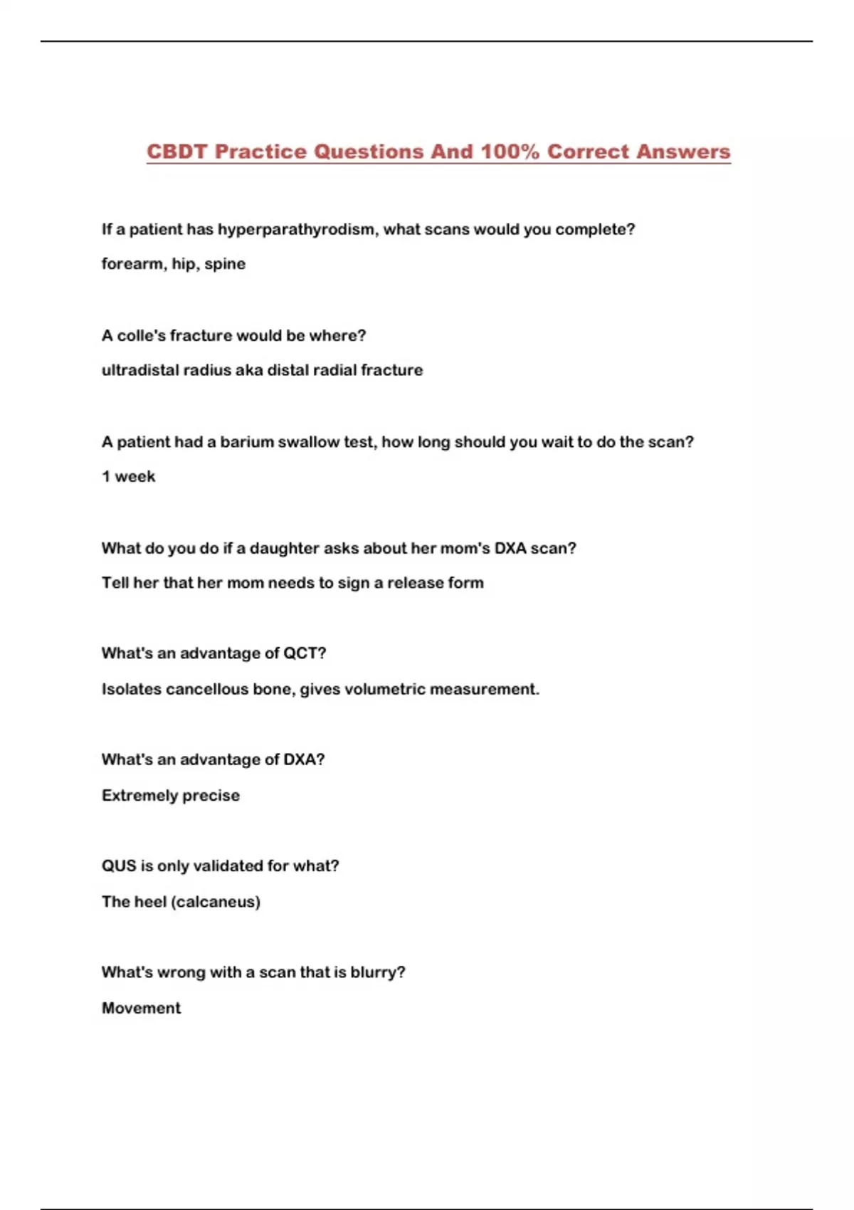 CBDT Practice Questions And 100% Correct Answers