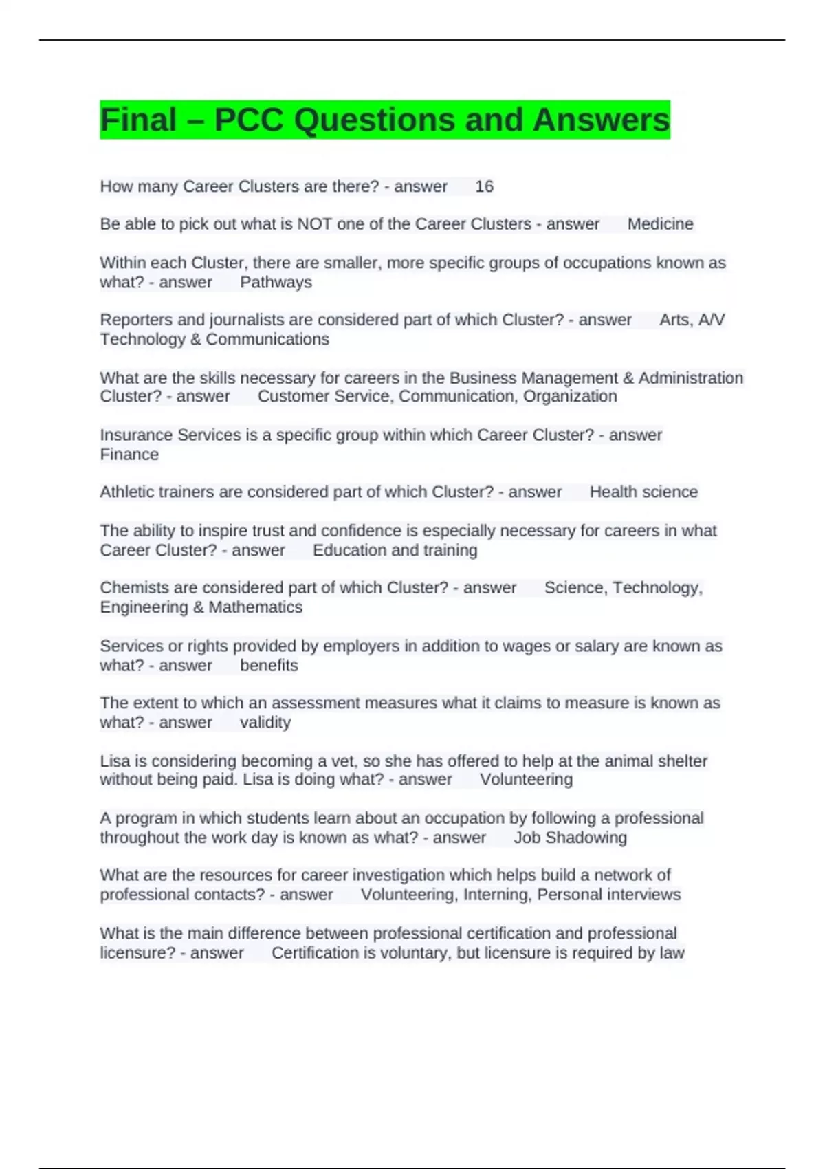 Career Cluster? - answer Education and training