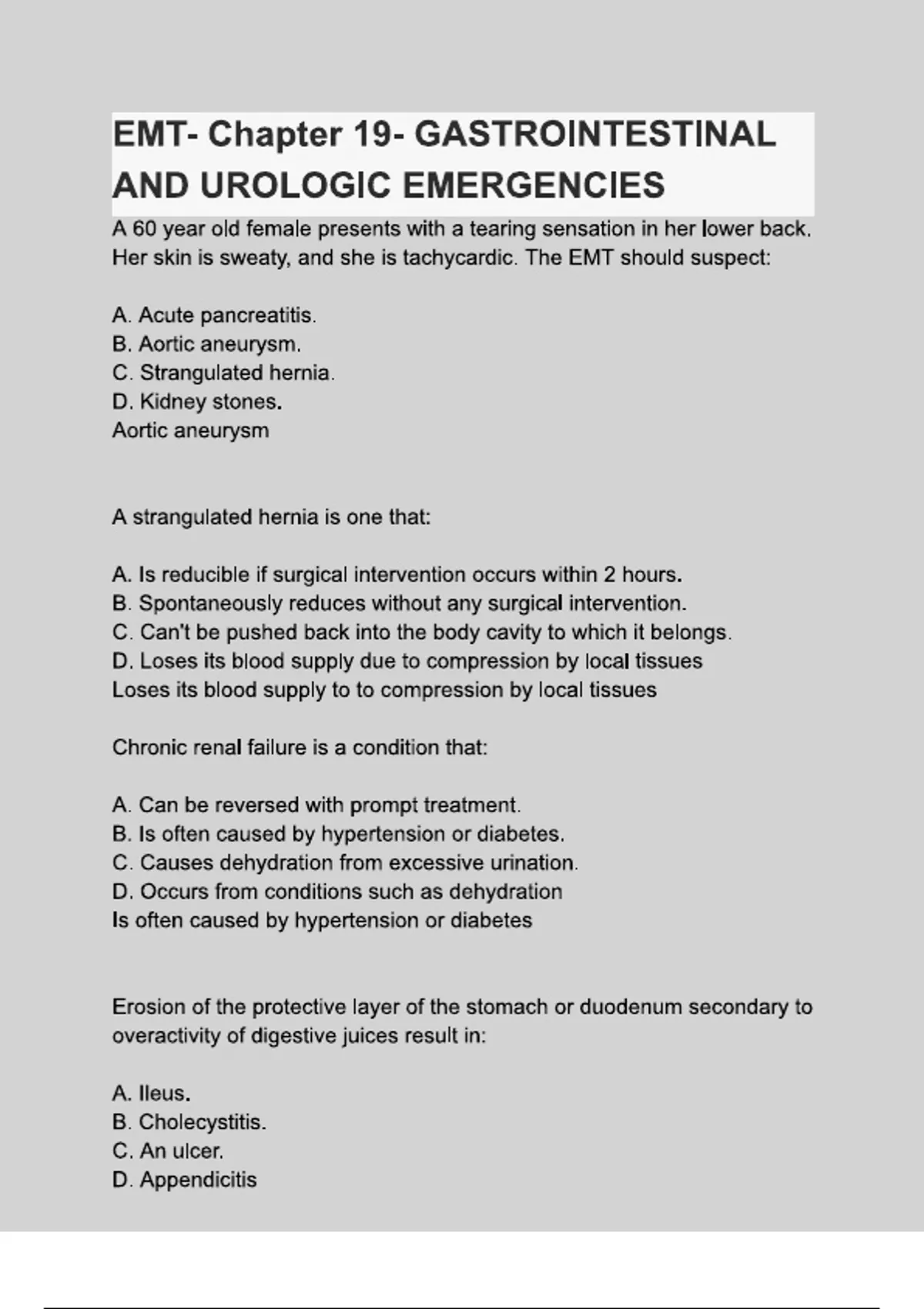 EMT- Chapter 19- GASTROINTESTINAL AND UROLOGIC EMERGENCIES