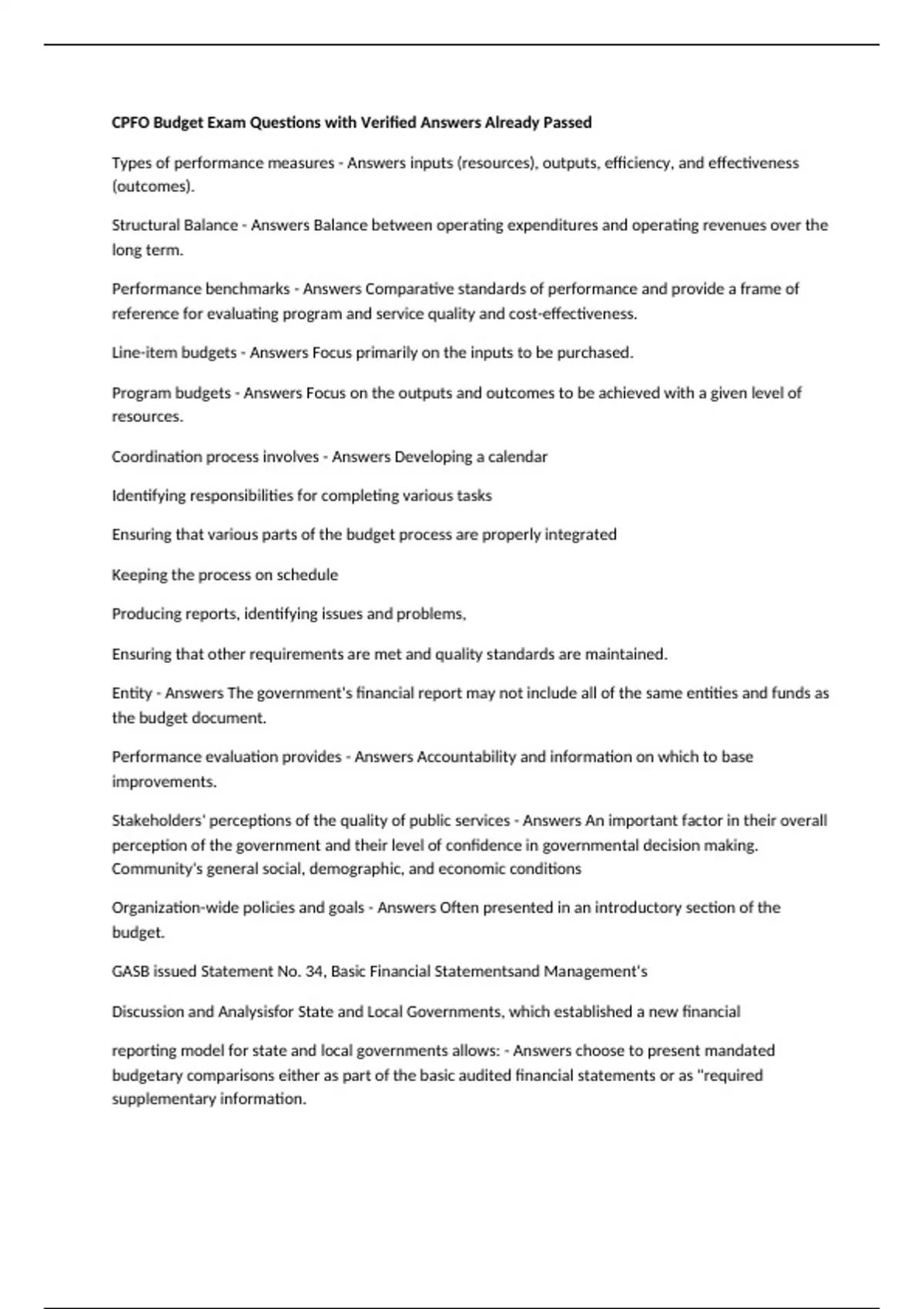 Program budgets - Answers Focus on the outputs and outcomes to be achieved with a given level of