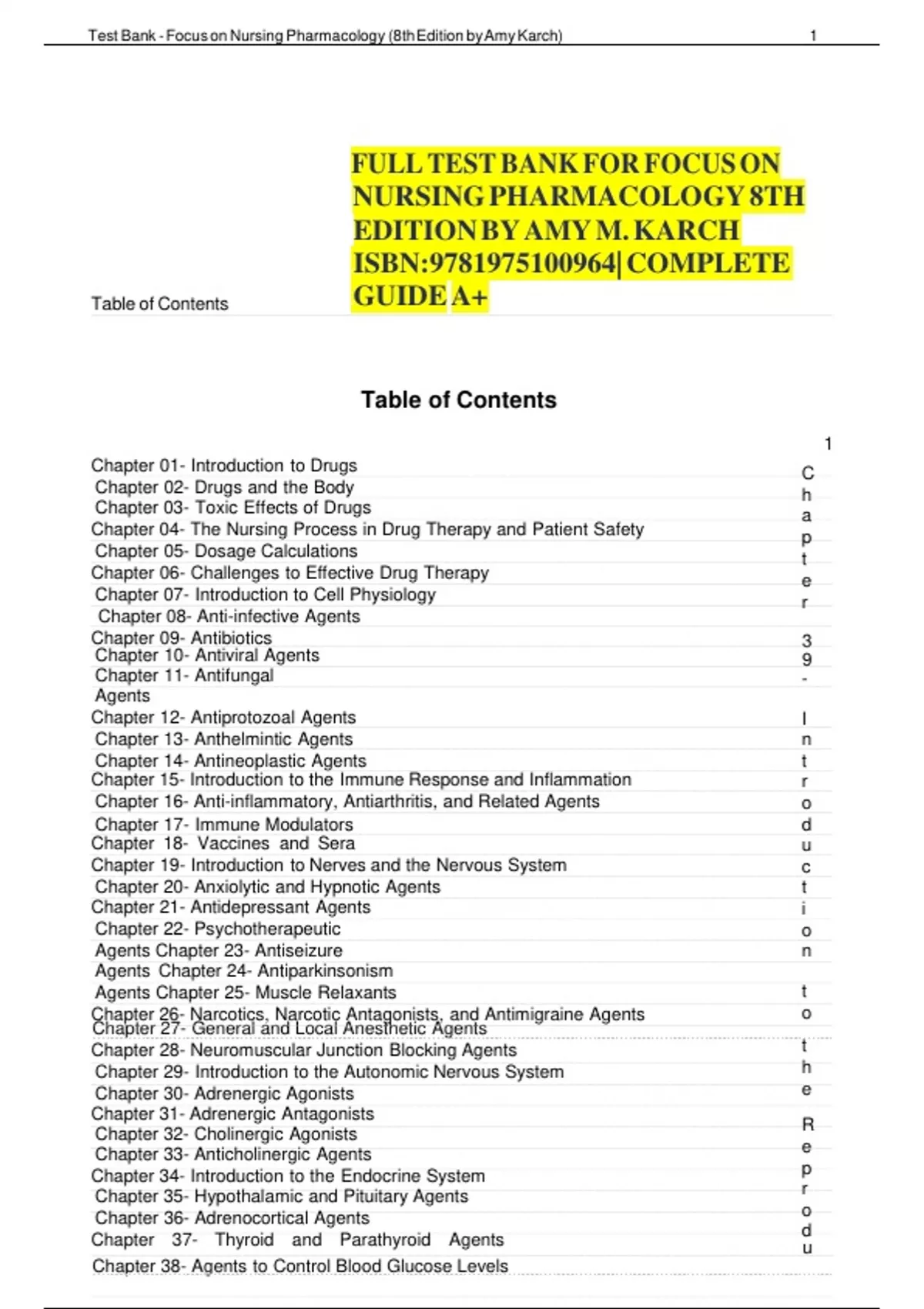 ,Test Bank - Focus on Nursing Pharmacology (8th Edition by Amy Karch)