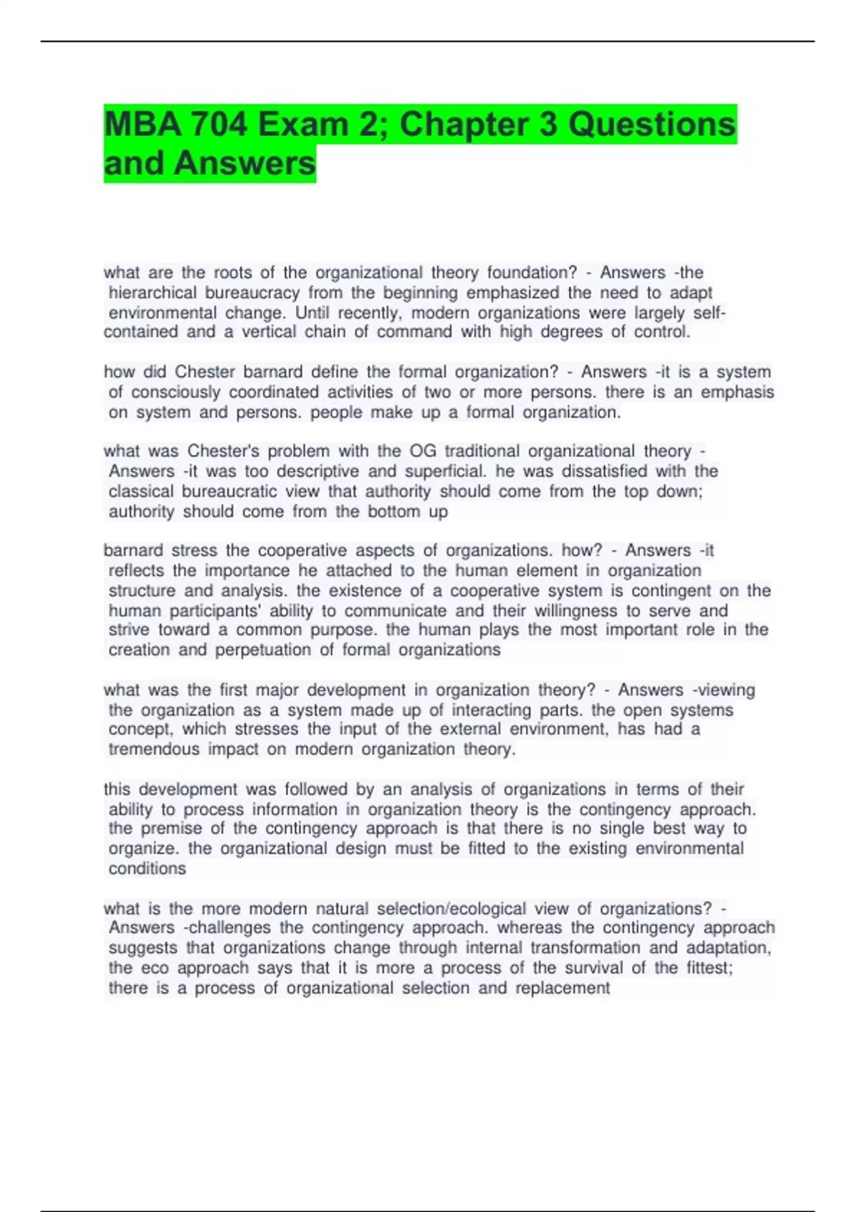 MBA 704 Exam 2; Chapter 3 Questions and Answers