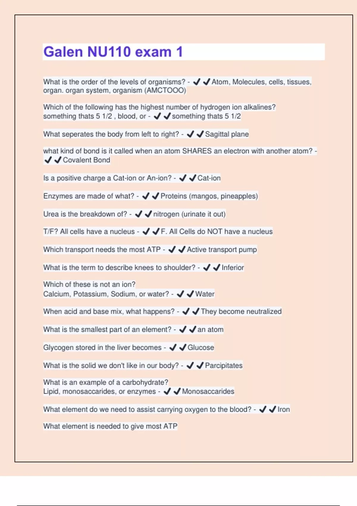 Galen NU110 exam 1 (Questions and answers) LATEST UPDATE