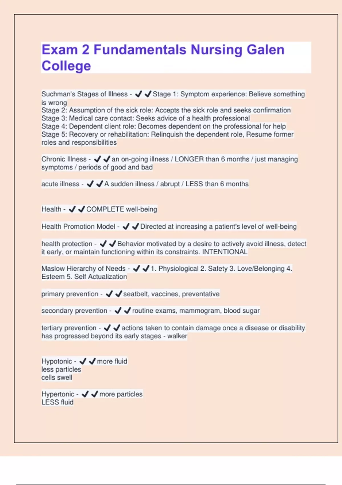 Exam 2 Fundamentals Nursing Galen College All Possible Questions and Answers 2025