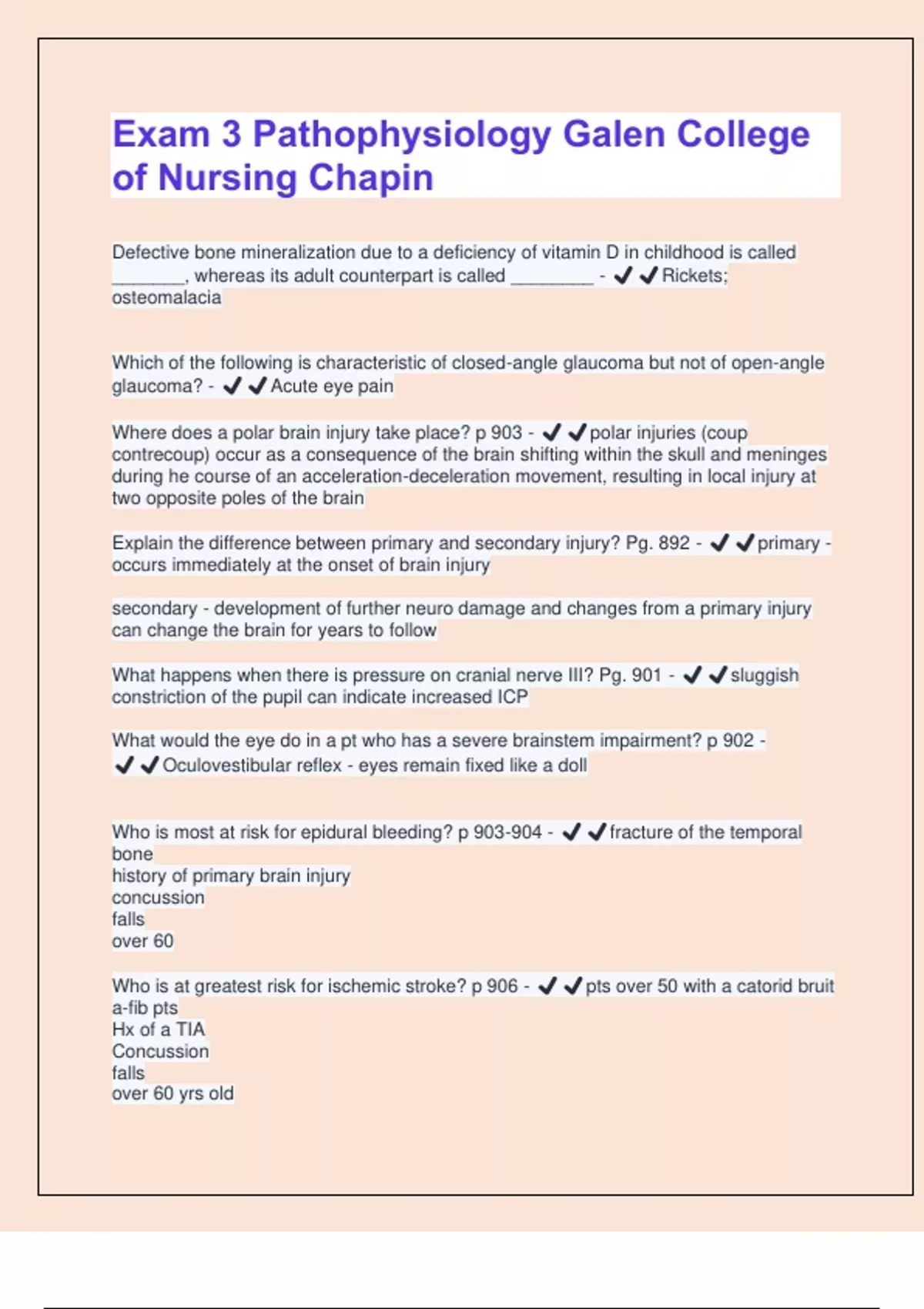 Exam 3 Pathophysiology Galen College of Nursing Chapin All Possible Questions and Answers 2025