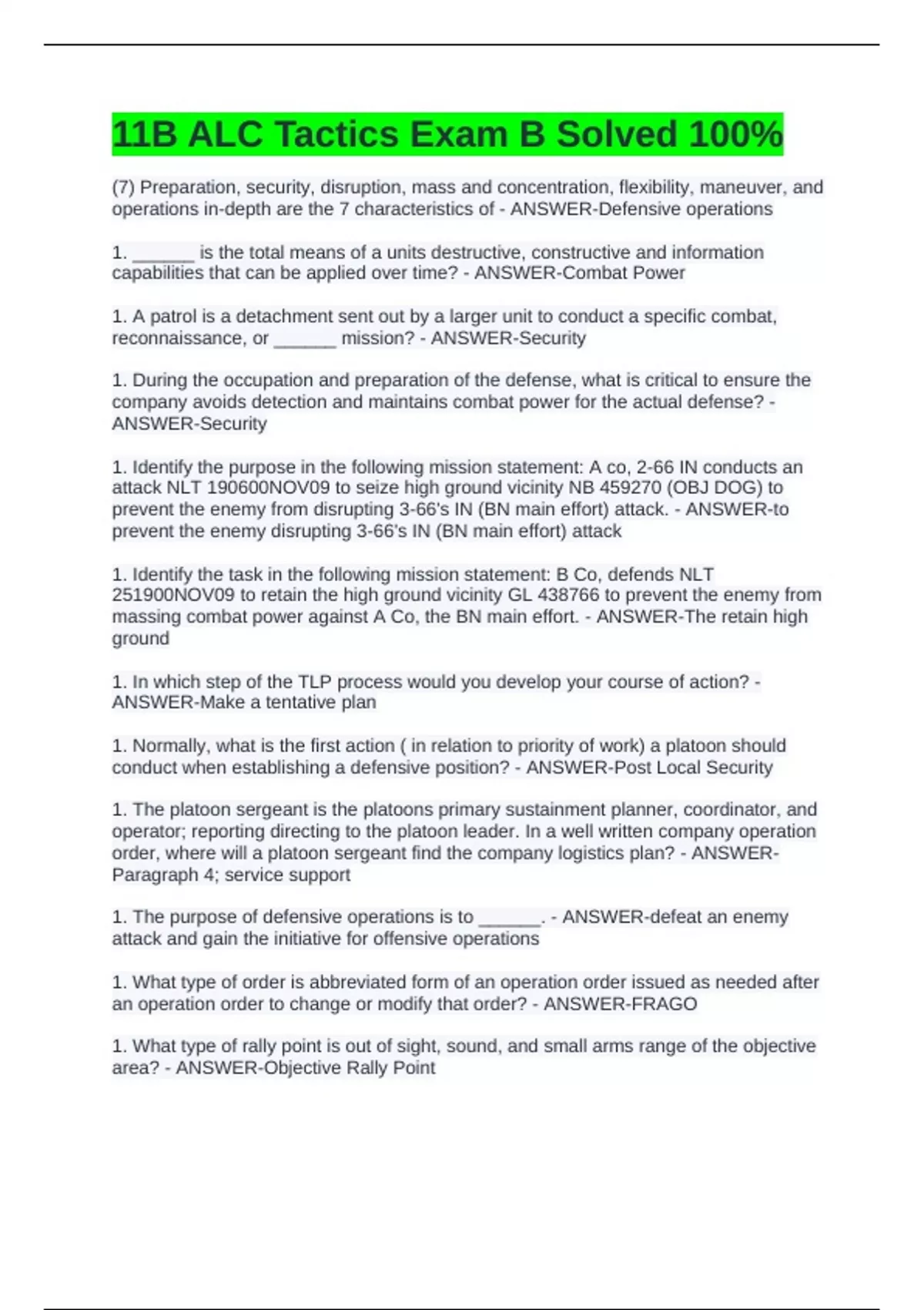 11B ALC Tactics Exam B Solved 100%