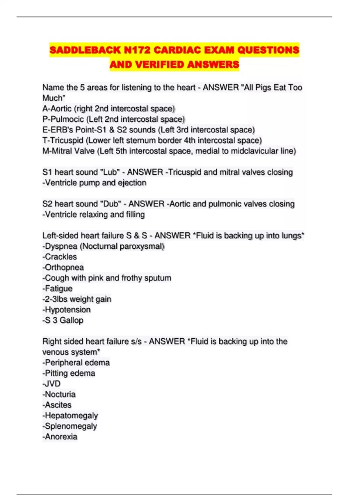 SADDLEBACK N172 CARDIAC EXAM QUESTIONS