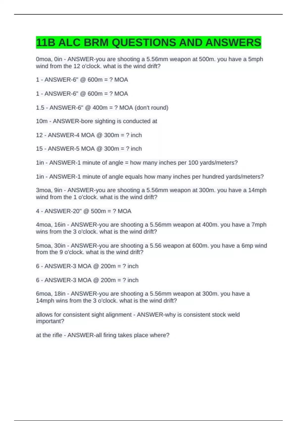 11B ALC BRM QUESTIONS AND ANSWERS