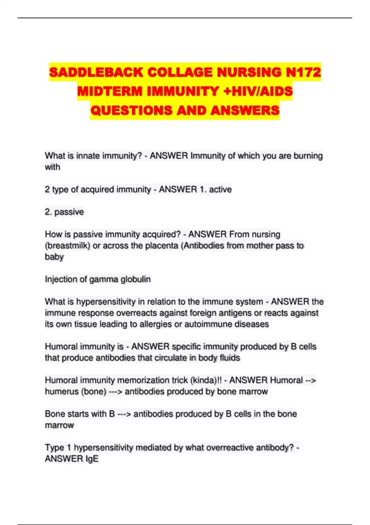 What is innate immunity? - ANSWER Immunity of which you are burning