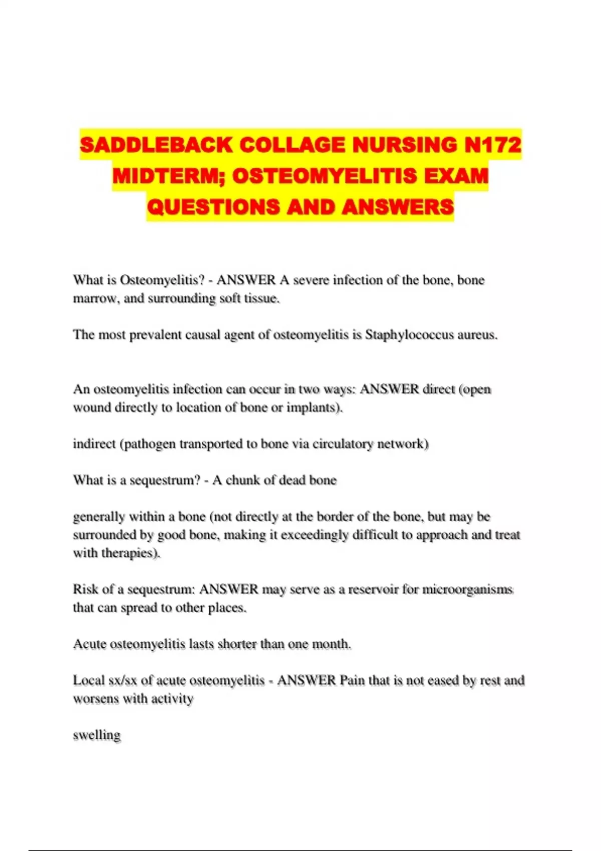 What is Osteomyelitis? - ANSWER A severe infection of the bone, bone