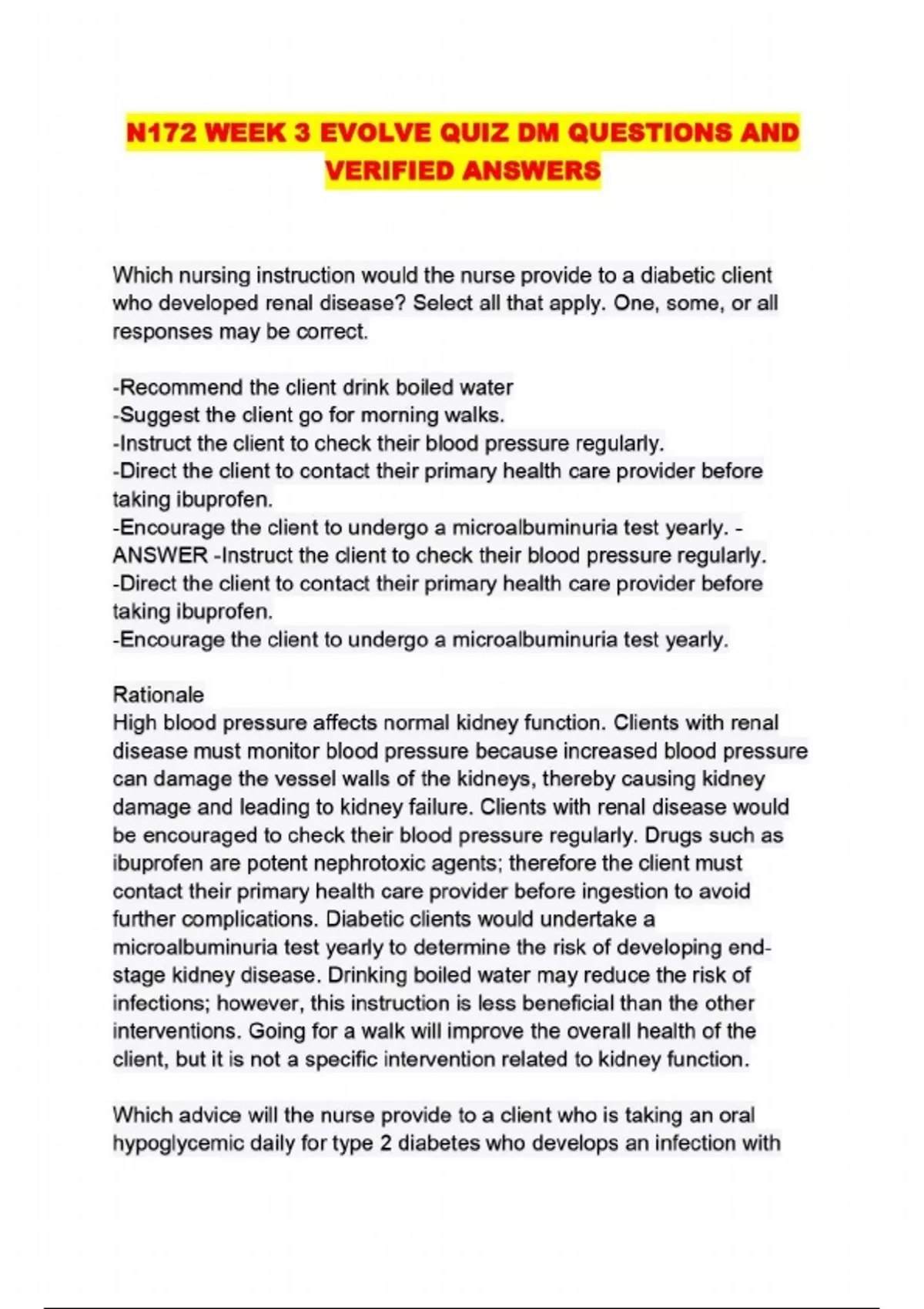N172 WEEK 3 EVOLVE QUIZ DM QUESTIONS AND VERIFIED ANSWERS...