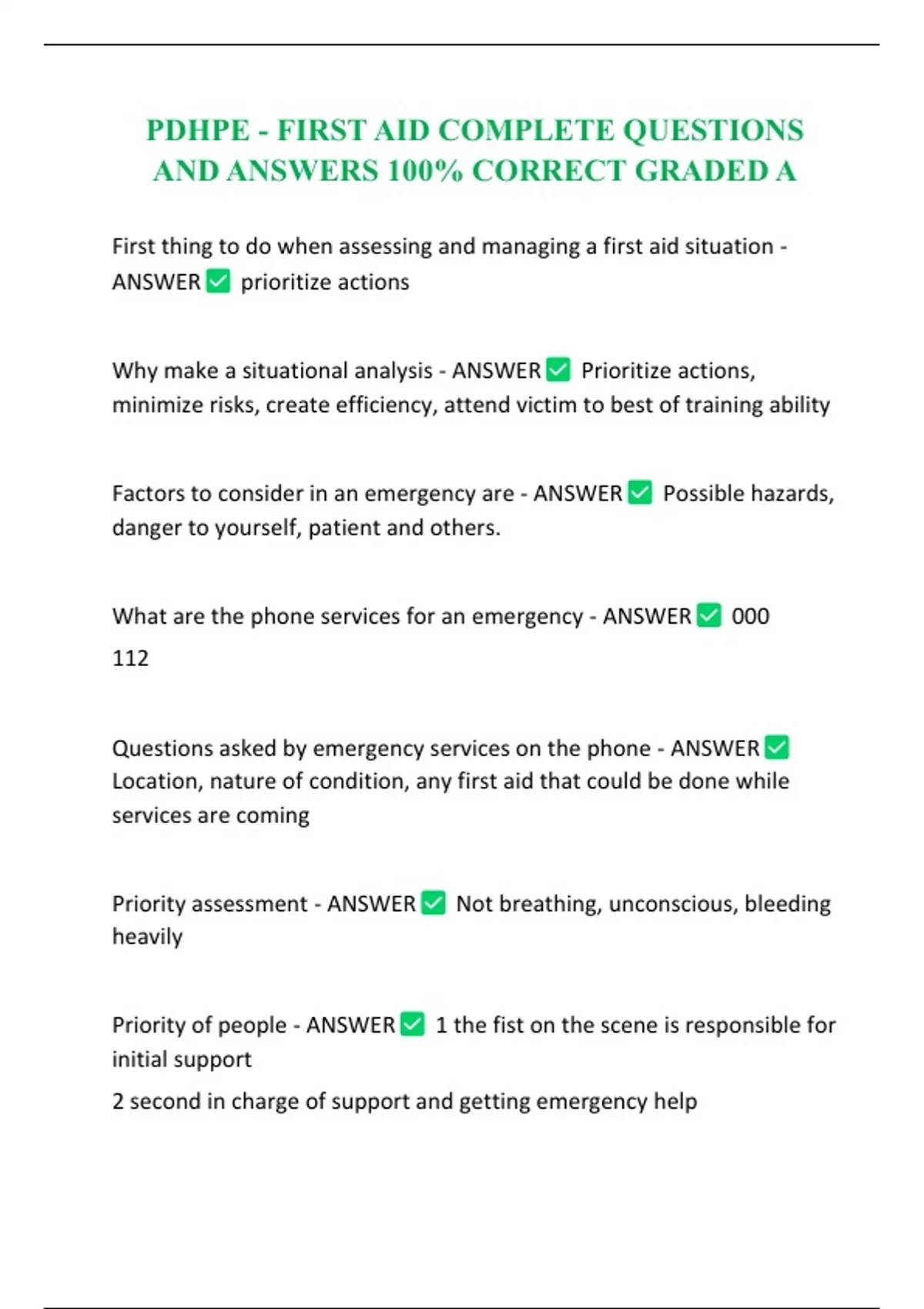 Factors to consider in an emergency are - ANSWER Possible hazards,