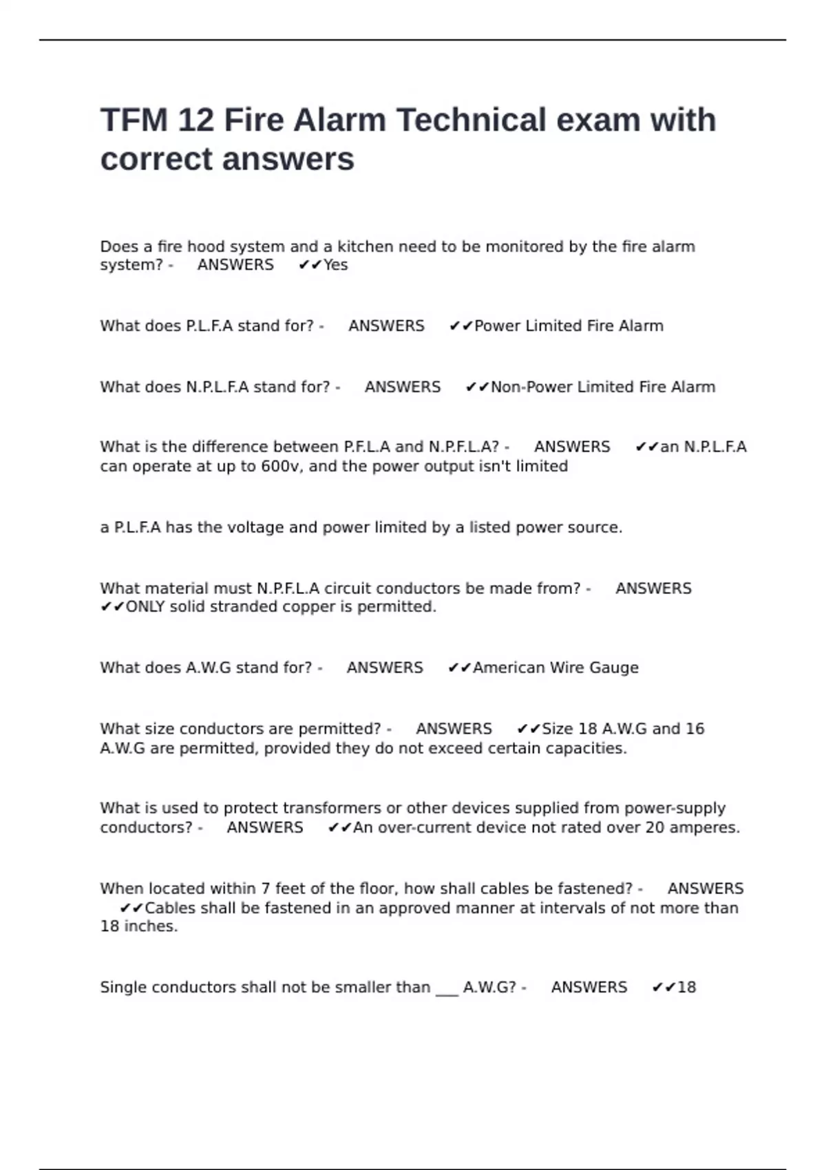 🔷ANSWERS 🖊✔✔Power Limited Fire Alarm (F.P.L) C.M.P, F.P.L.P, C.M.R, F.P.L.R,