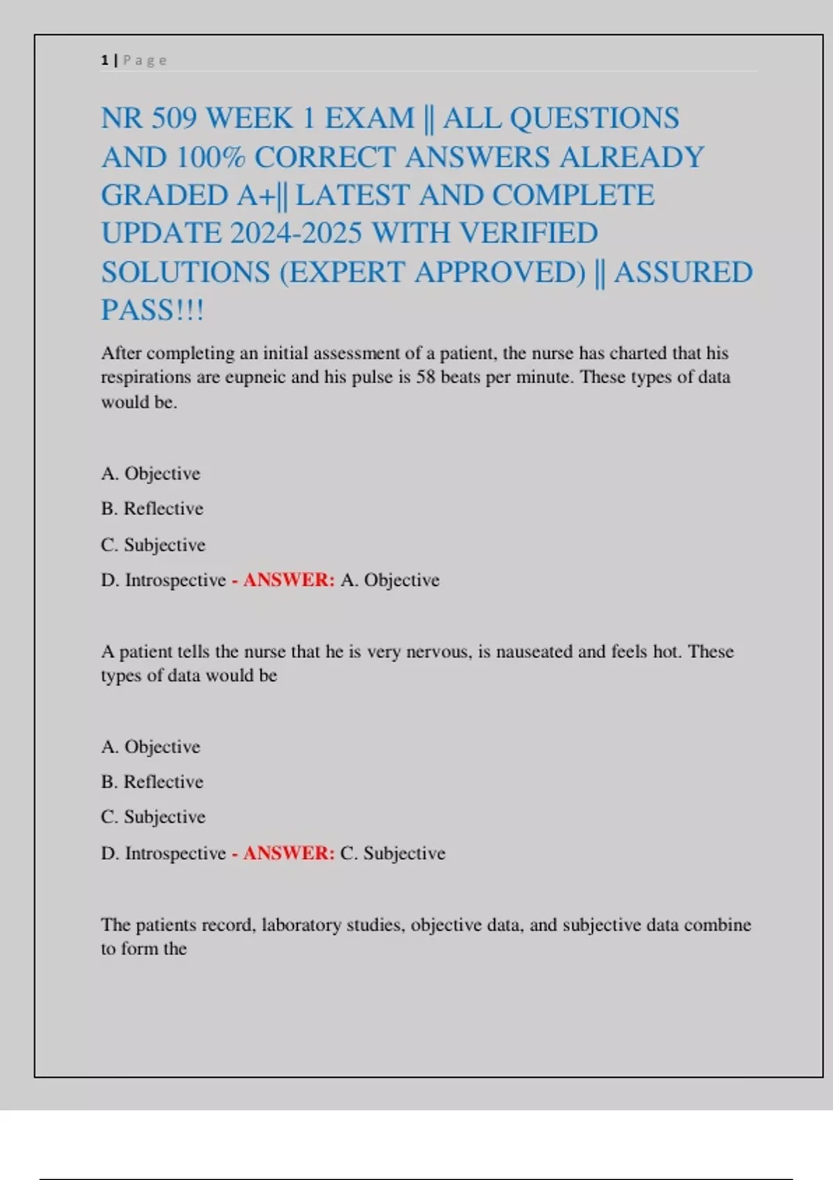 NR 509 WEEK 1 EXAM || ALL QUESTIONS