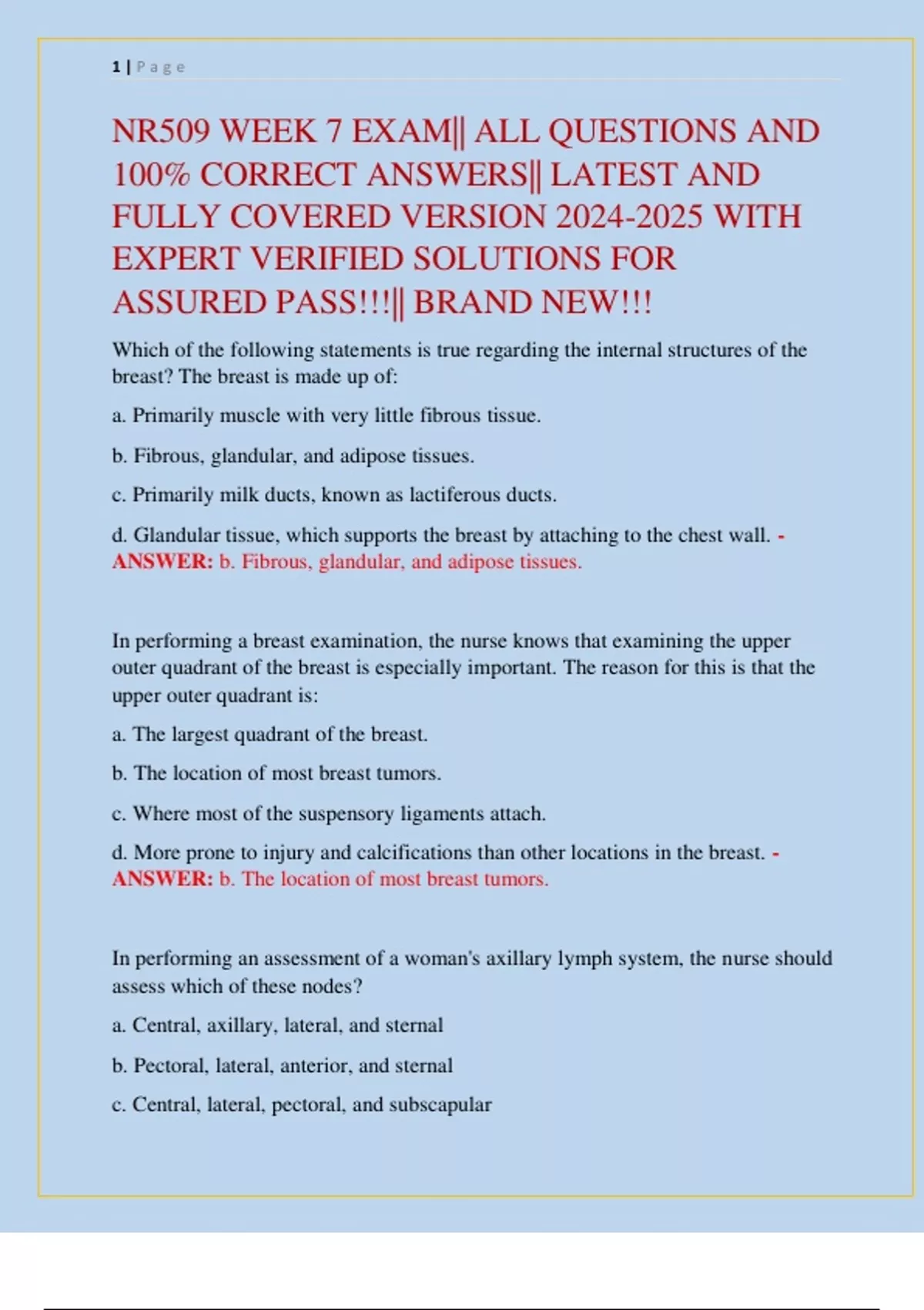 NR509 WEEK 7 EXAM|| ALL QUESTIONS AND