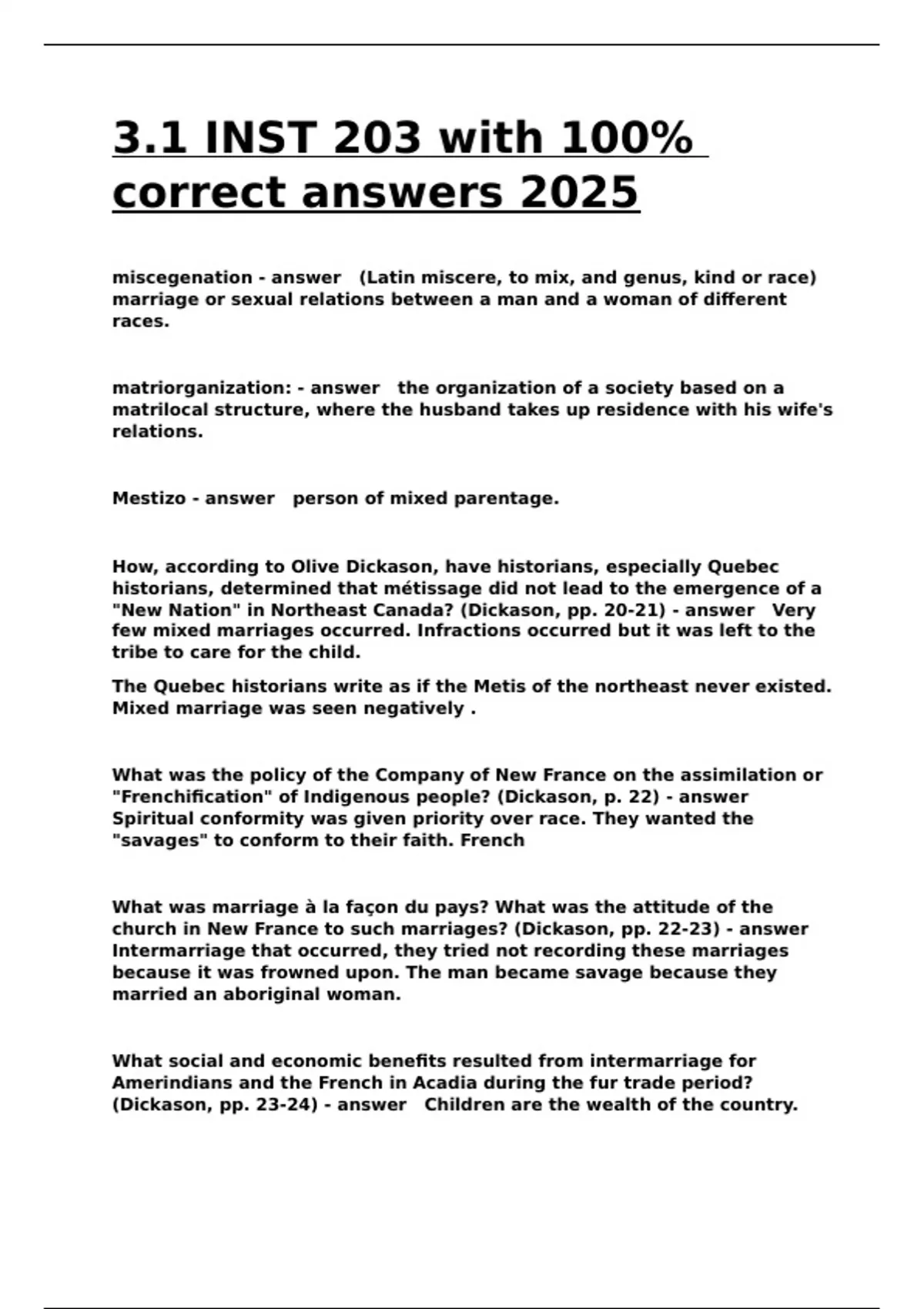 church in New France to such marriages? (Dickason, pp. 22-23) - answer