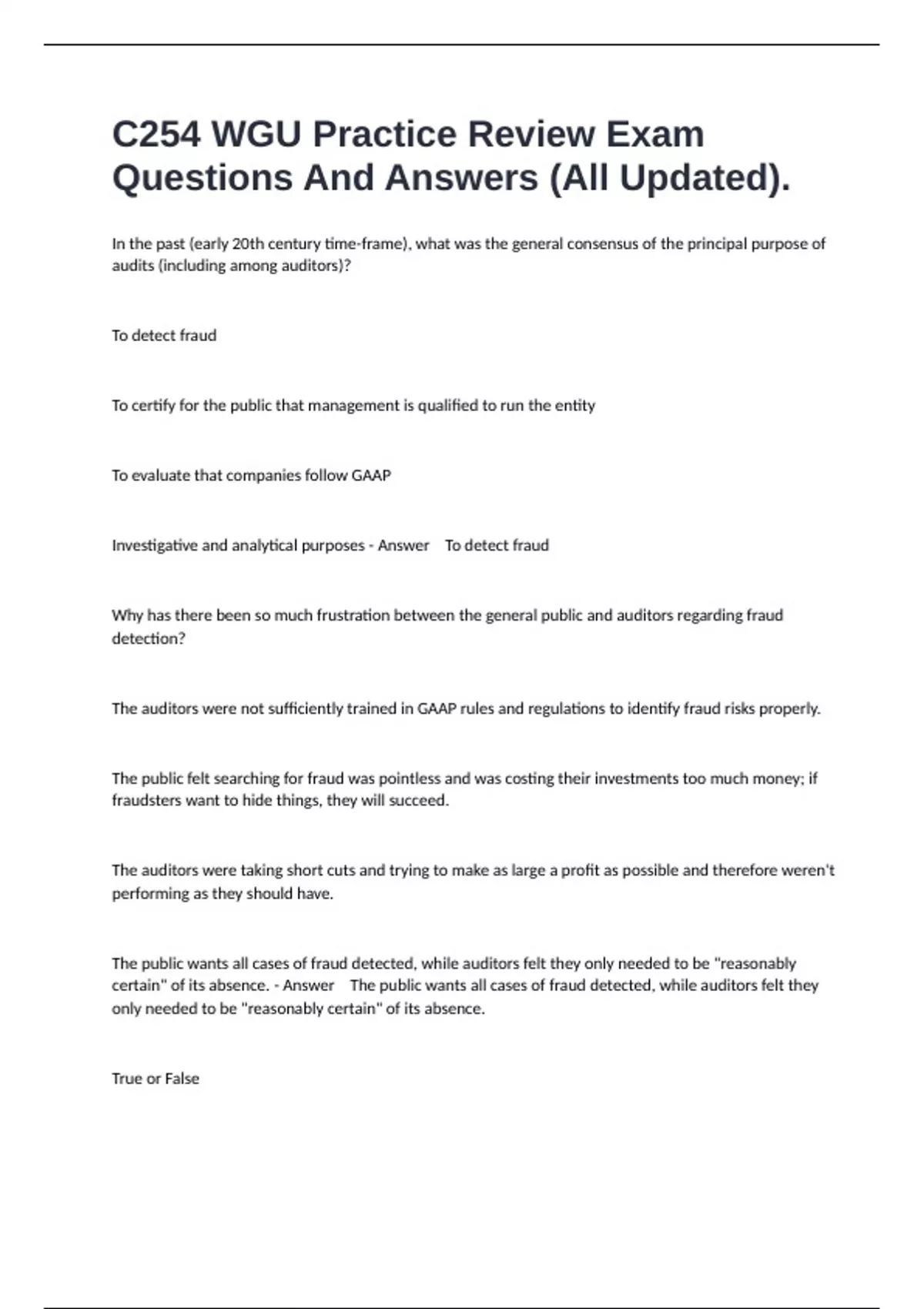 certain" of its absence. - Answer The public wants all cases of fraud detected, while auditors felt they