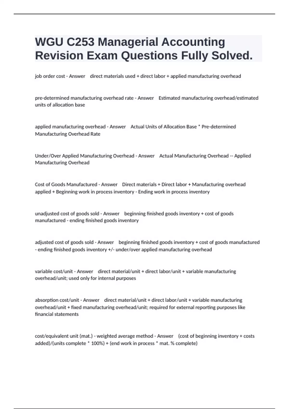 Under/Over Applied Manufacturing Overhead - Answer Actual Manufacturing Overhead -- Applied