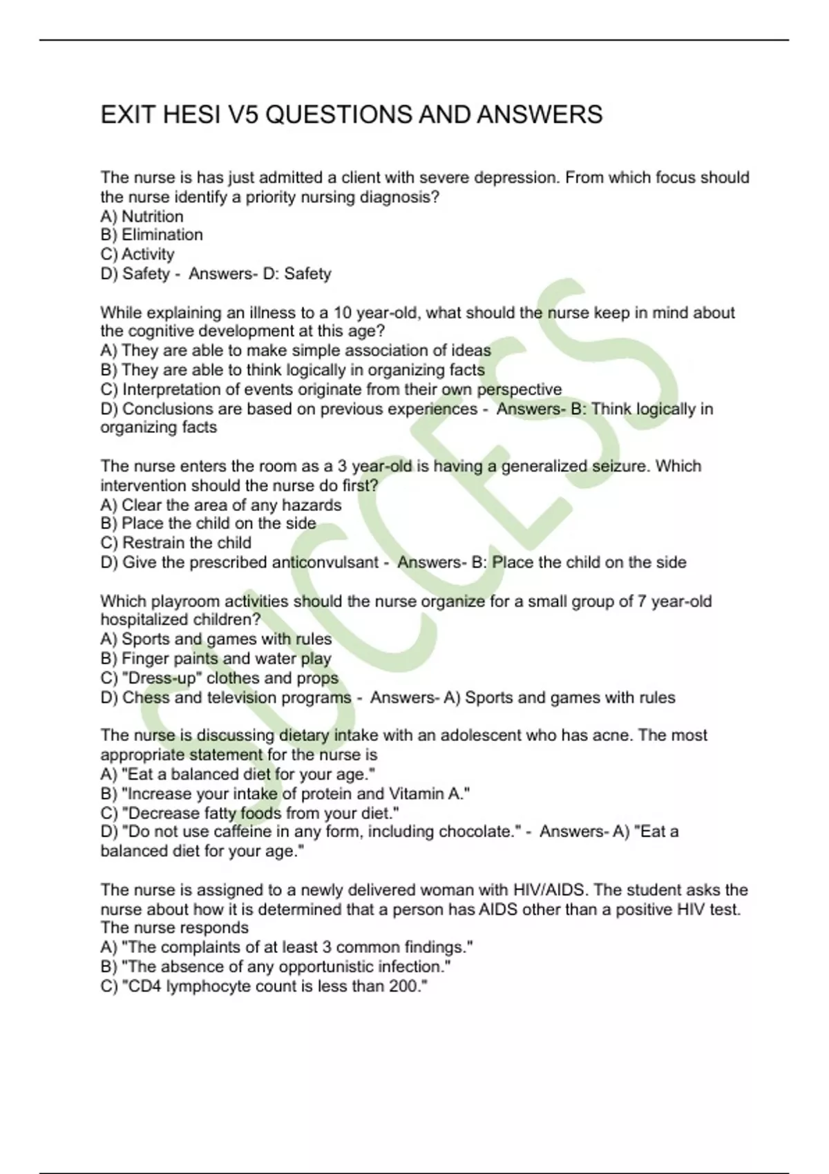 EXIT HESI V5 QUESTIONS AND ANSWERS
