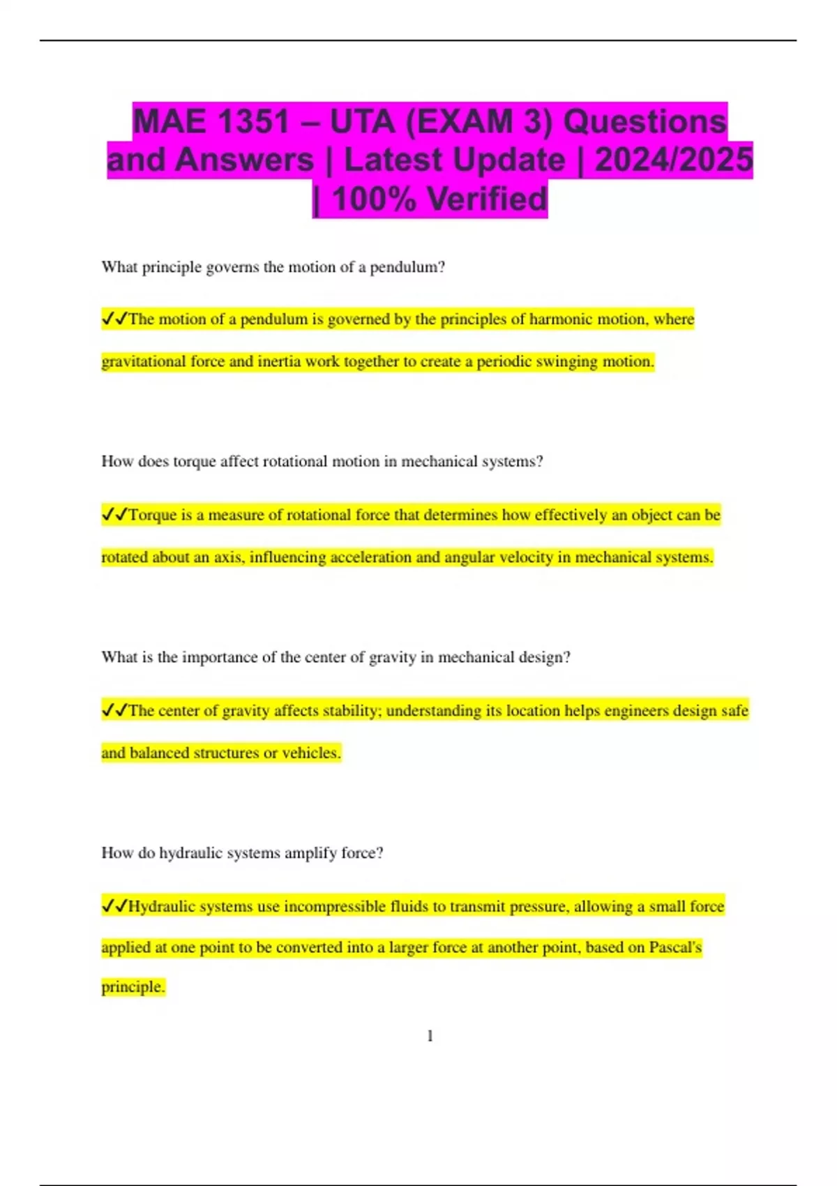 and Answers | Latest Update | 2024/2025