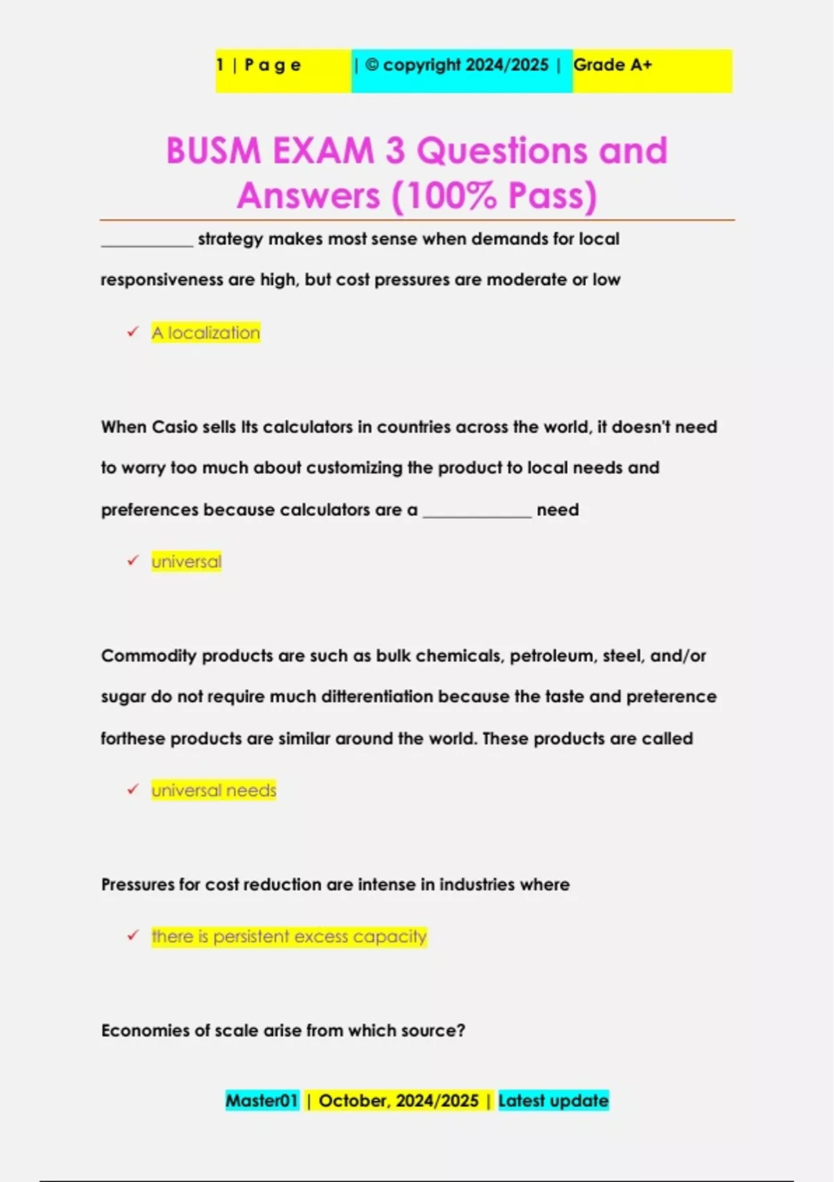 BUSM EXAM 3 Questions and Answers (100% Pass)