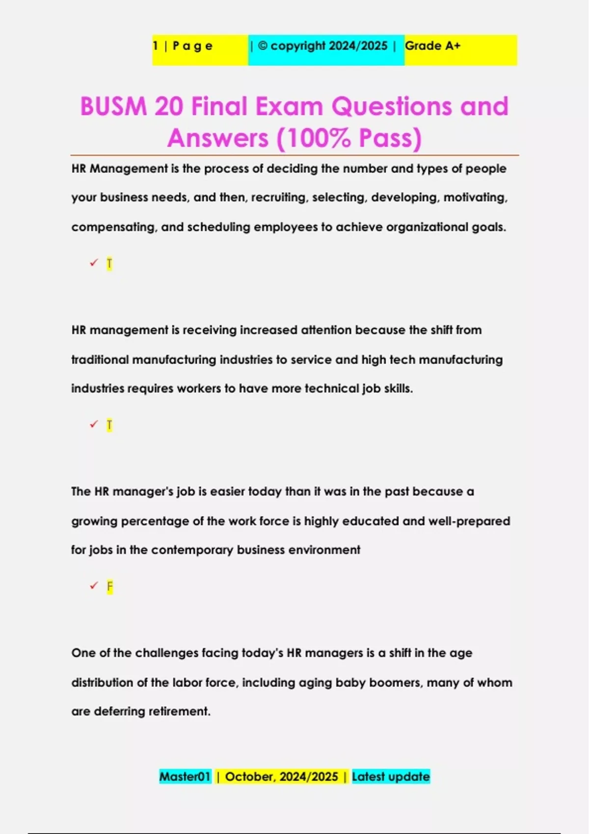 BUSM 20 Final Exam Questions and