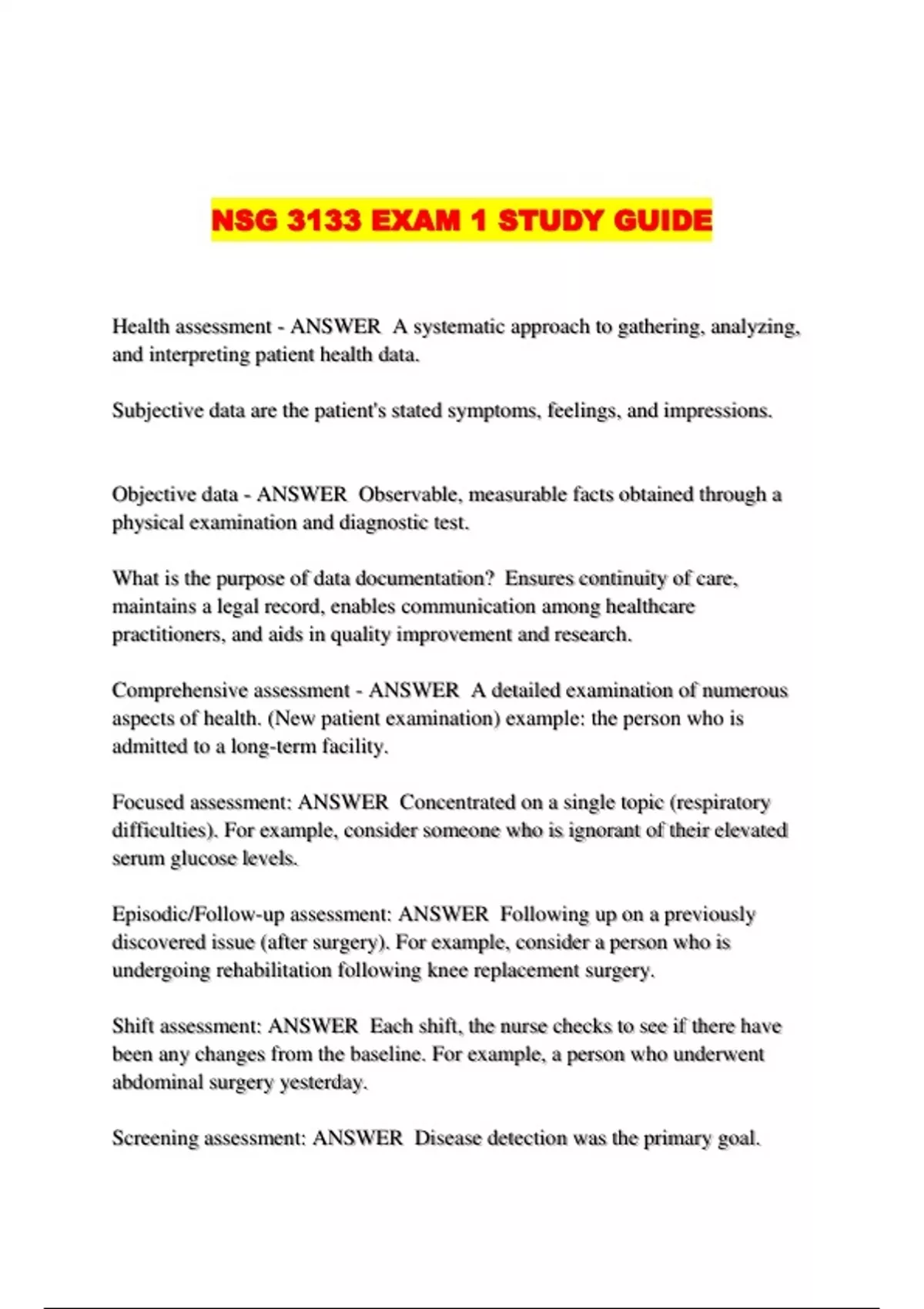 NSG 3133 EXAM 1 STUDY GUIDE