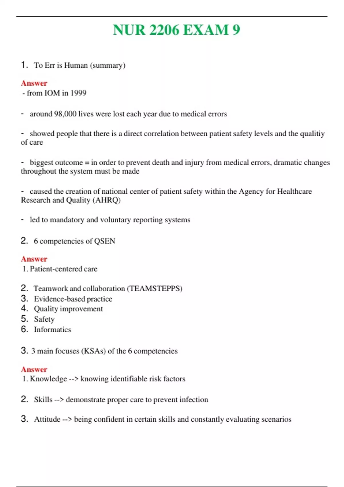 NUR 2206 EXAM 9